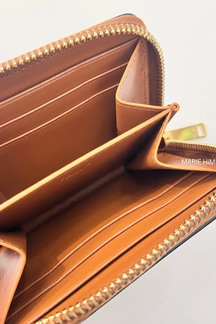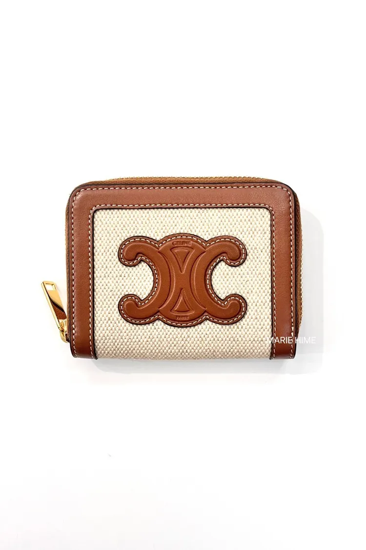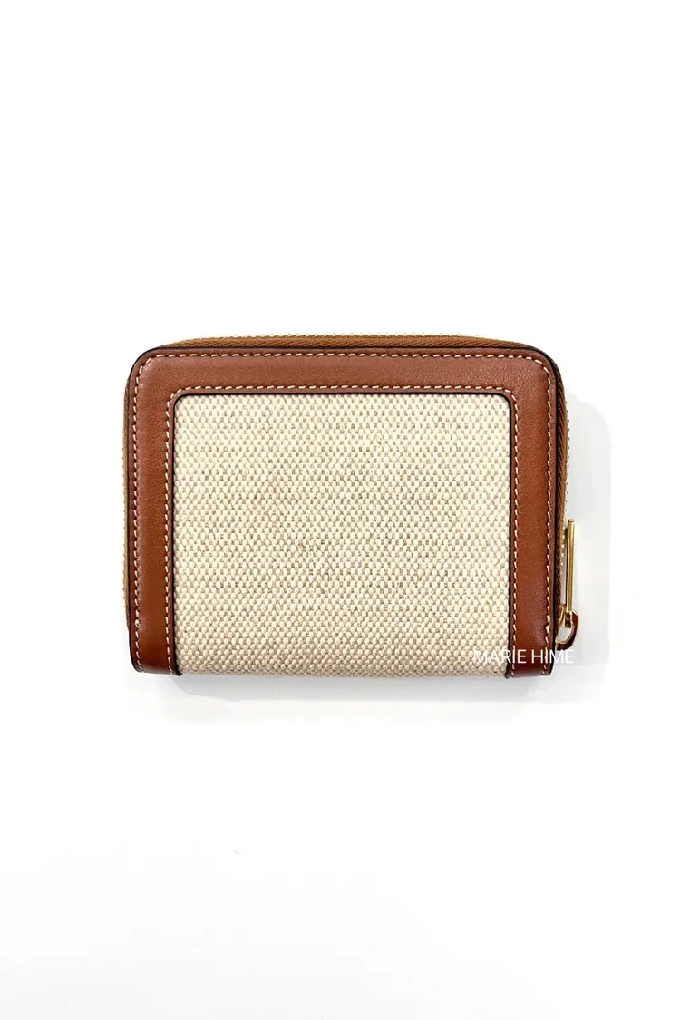 現貨//CELINE 凱旋門M字拉鍊錢包 棕色皮拚帆布