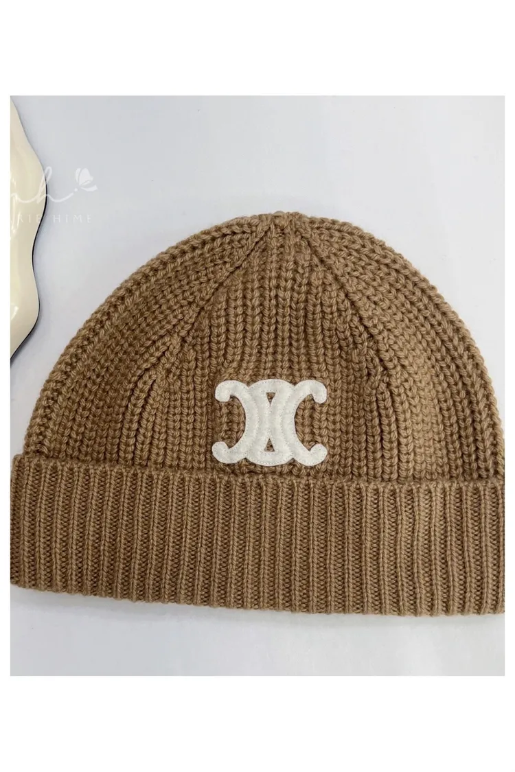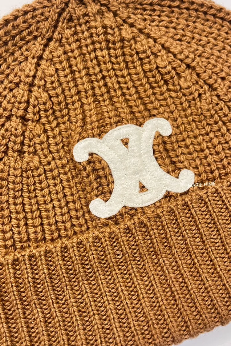 CELINE//凱旋門LOGO 短版毛帽 焦糖色