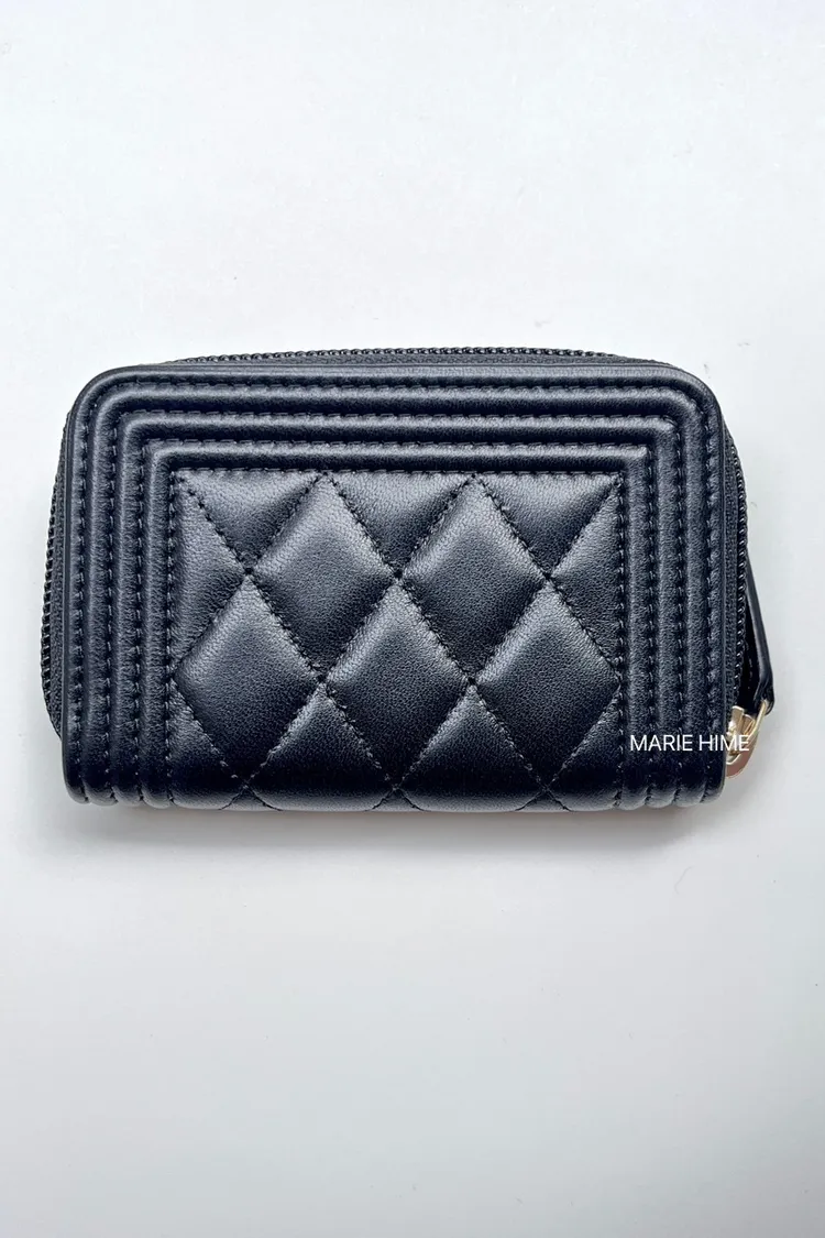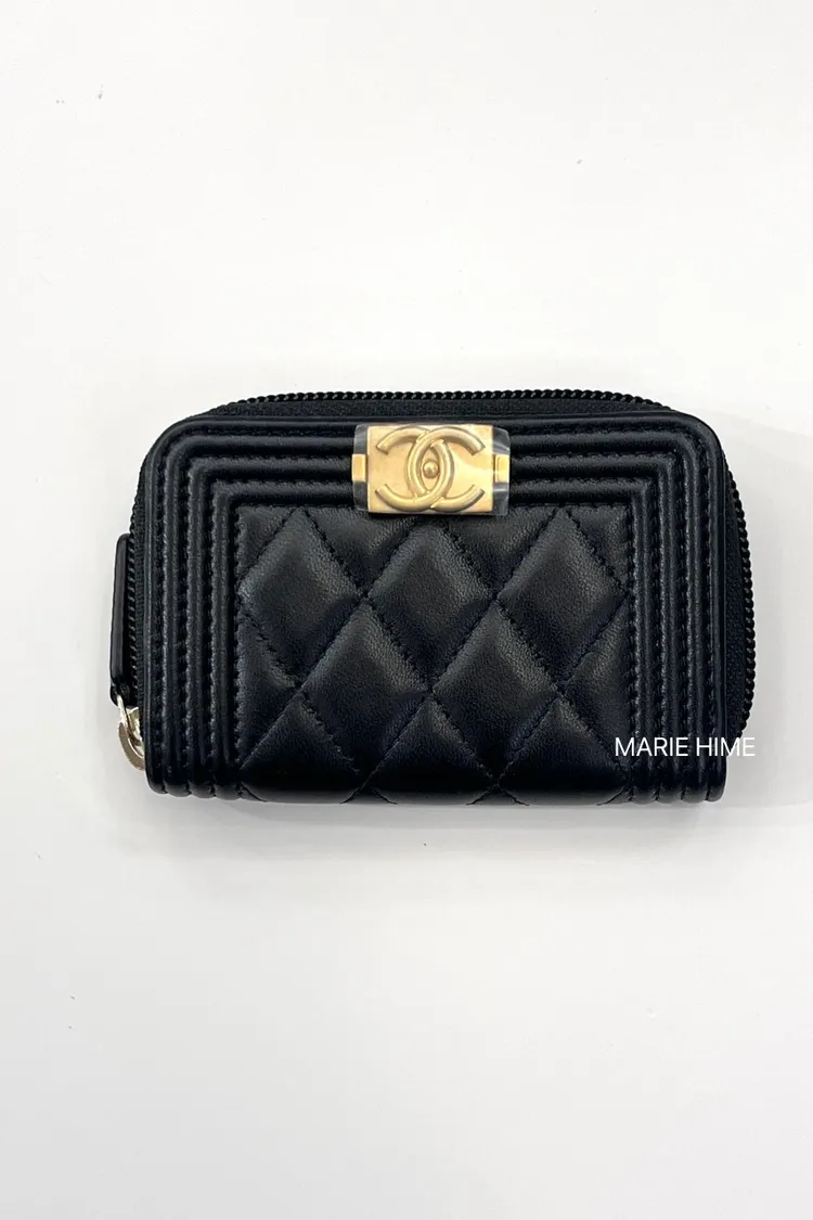 現貨//CHANEL boy 拉鍊錢包 羊皮黑色金釦