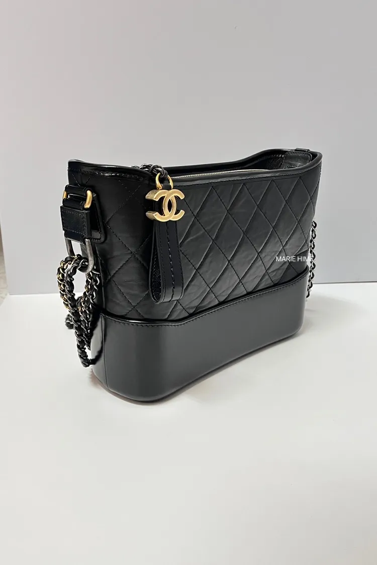 現貨//CHANEL 流浪包中號 皺紋牛皮黑色