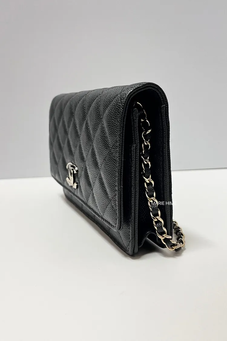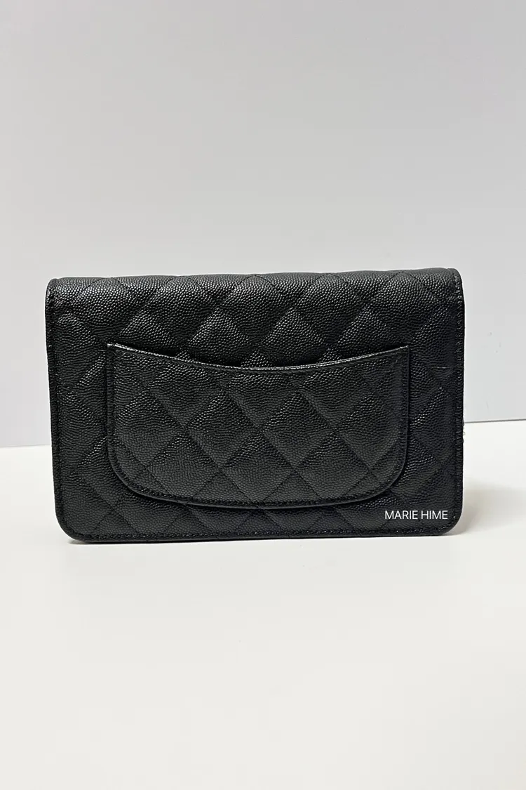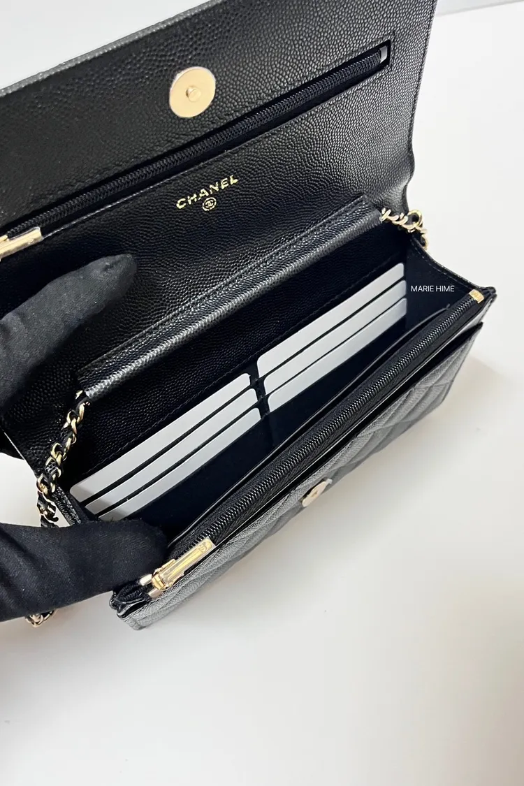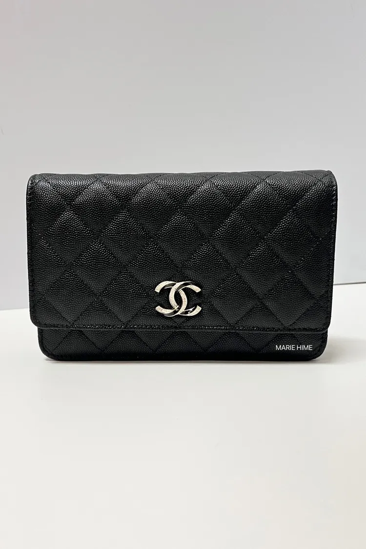 現貨//CHANEL 23S琺瑯水鑽雙C釦WOC 荔枝皮黑色金釦