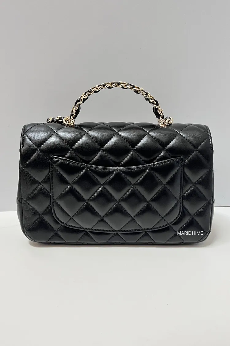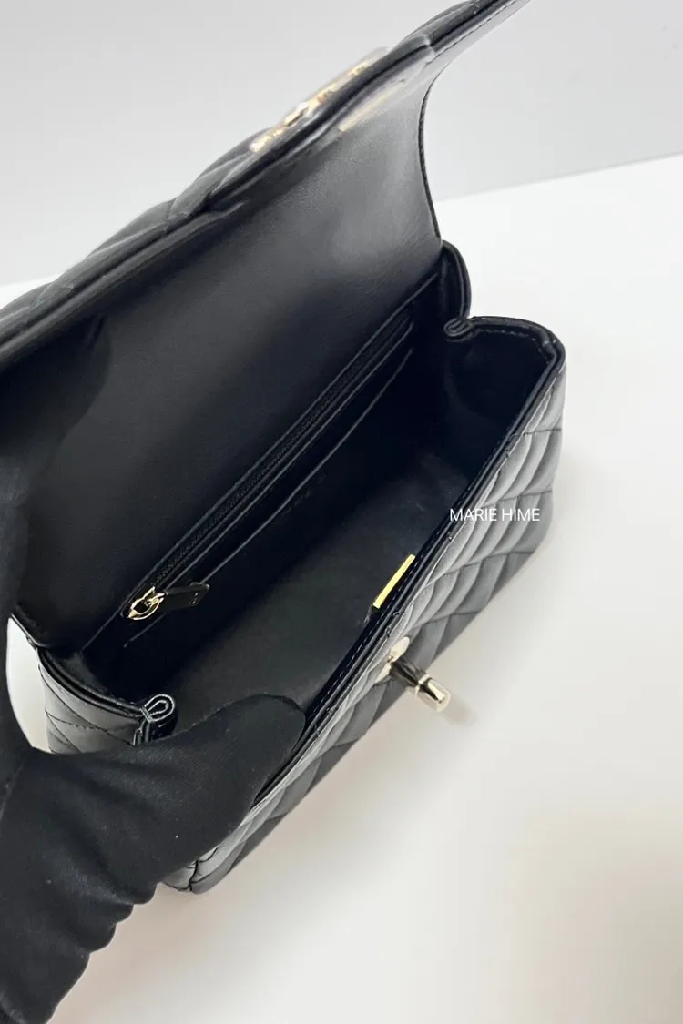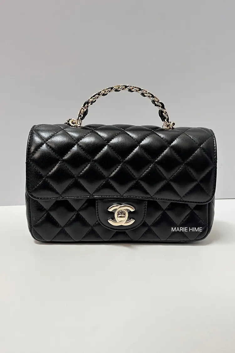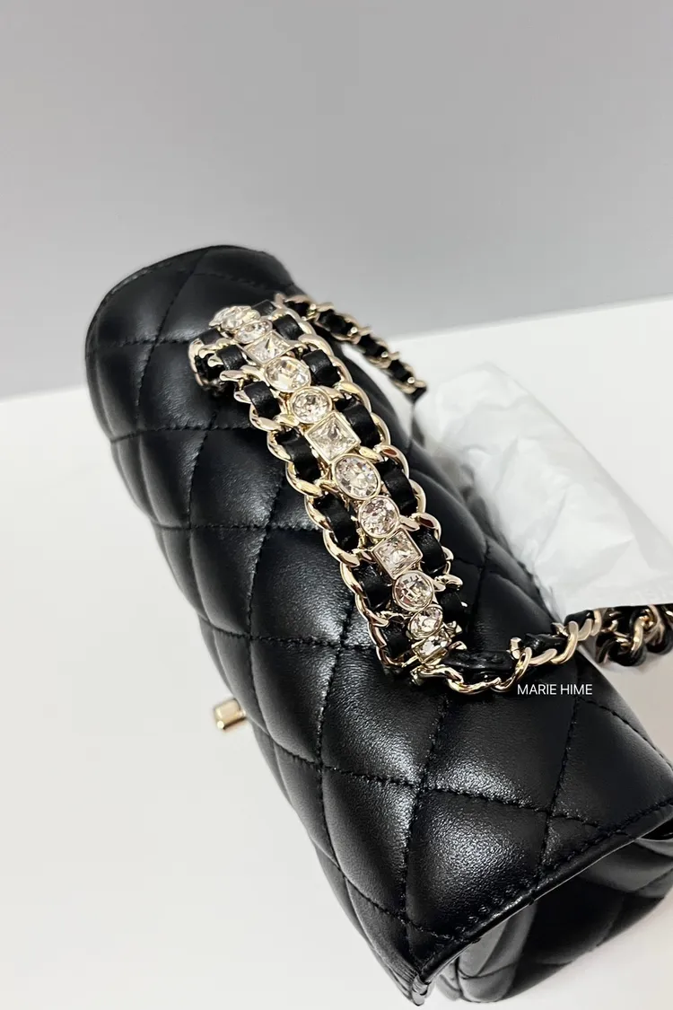 現貨//CHANEL 季節限量水鑽提把21 羊皮黑色金釦