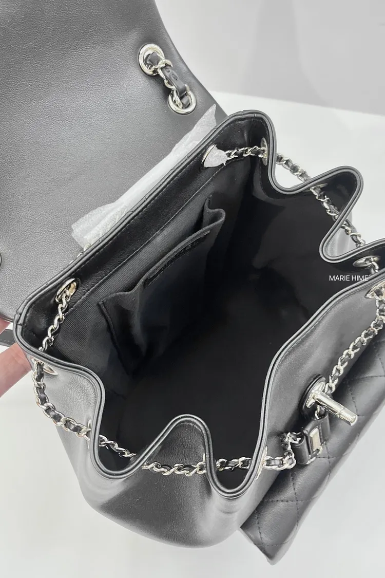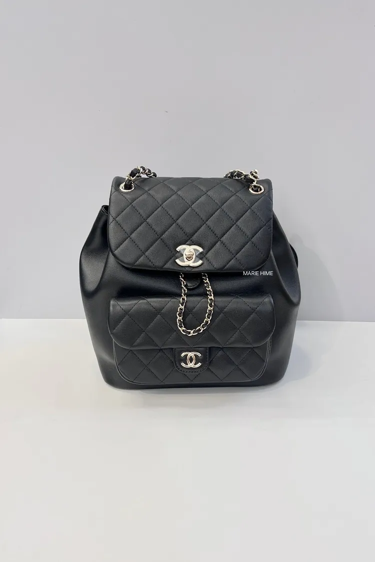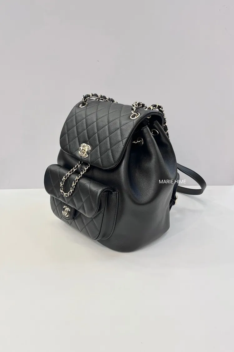 現貨//CHANEL 大款DUMA單口袋後背包 黑色平滑牛皮