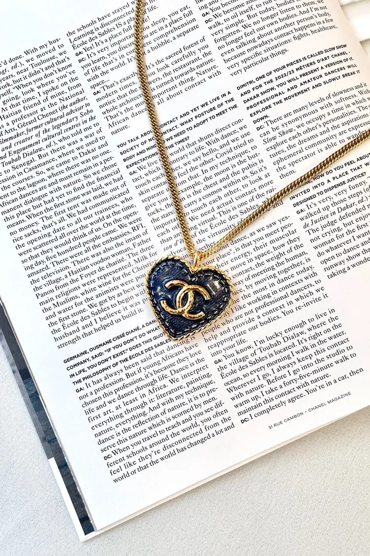 現貨//CHANEL 垂墜琺瑯牛仔愛心項鍊