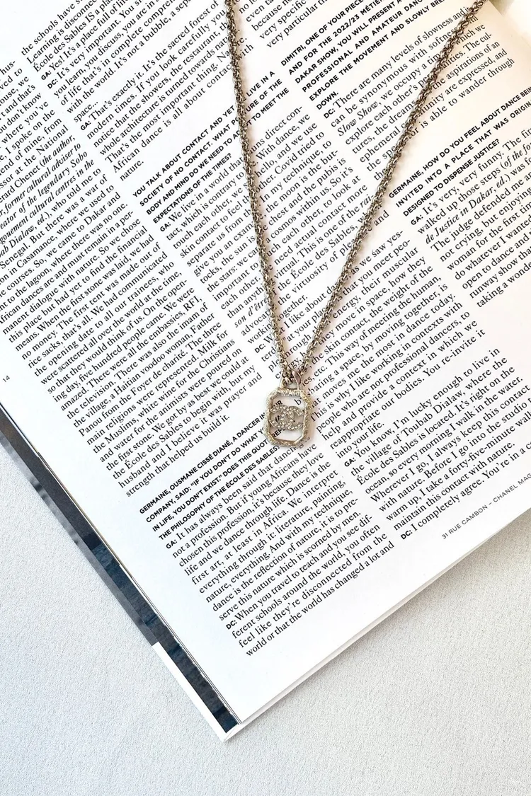 現貨//CHANEL 刻紋方框水鑽雙C 項鍊