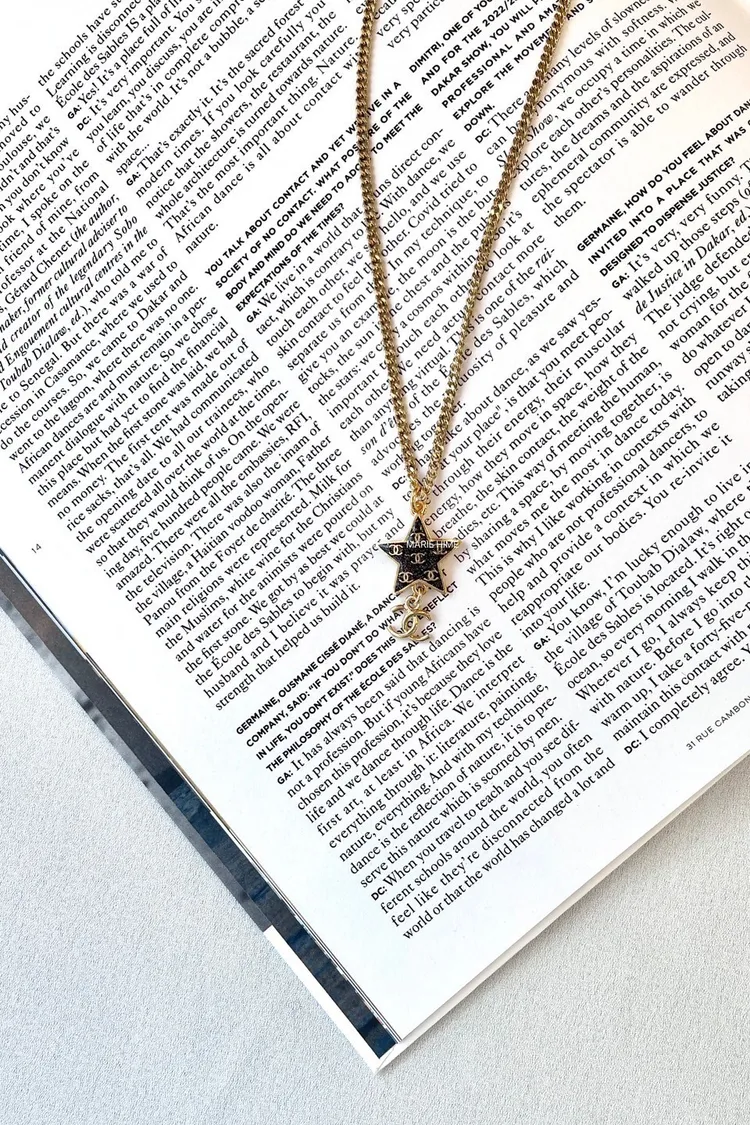 現貨//CHANEL 黑琺瑯星星垂墜雙C 項鍊