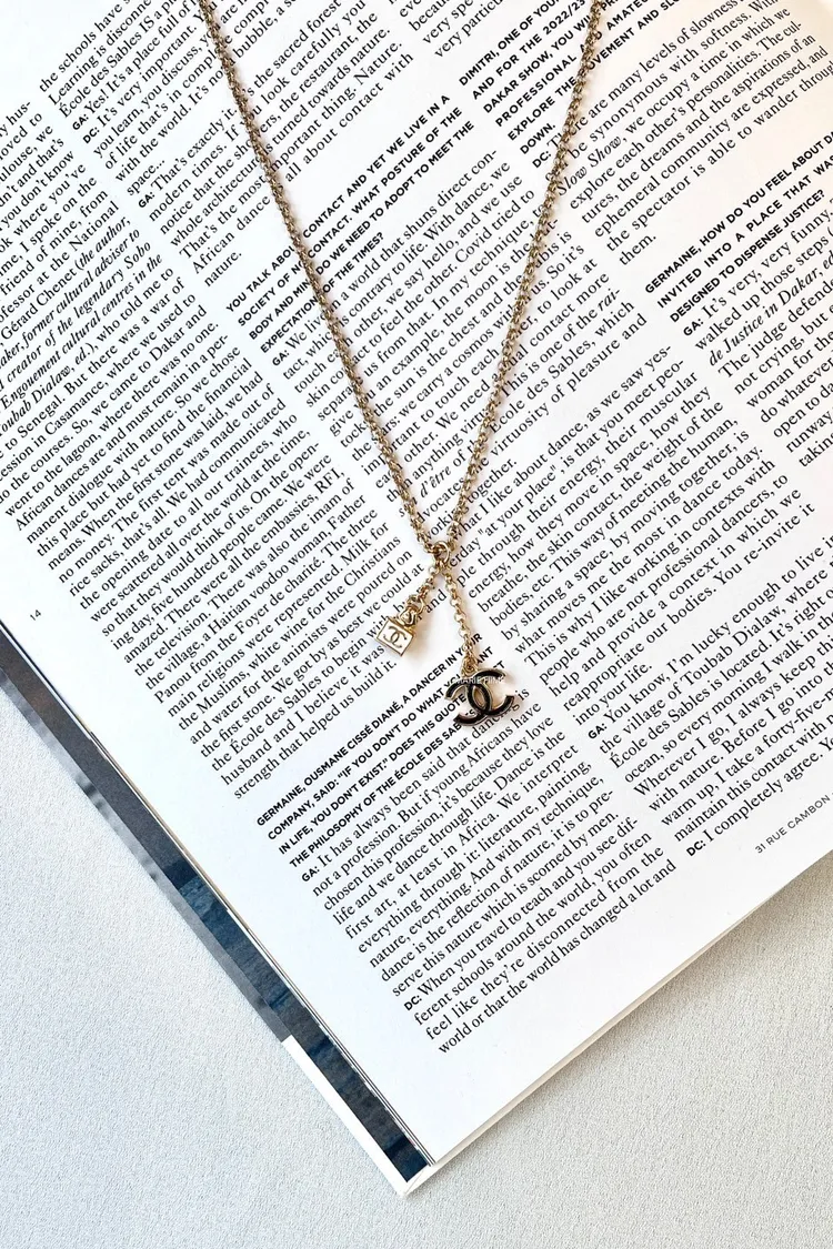 現貨//CHANEL 垂墜白方塊黑琺瑯雙C 項鍊