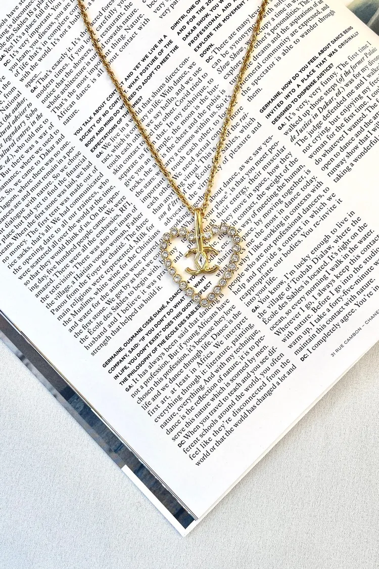 現貨//CHANEL 水鑽愛心框 菱形水鑽雙C 項鍊