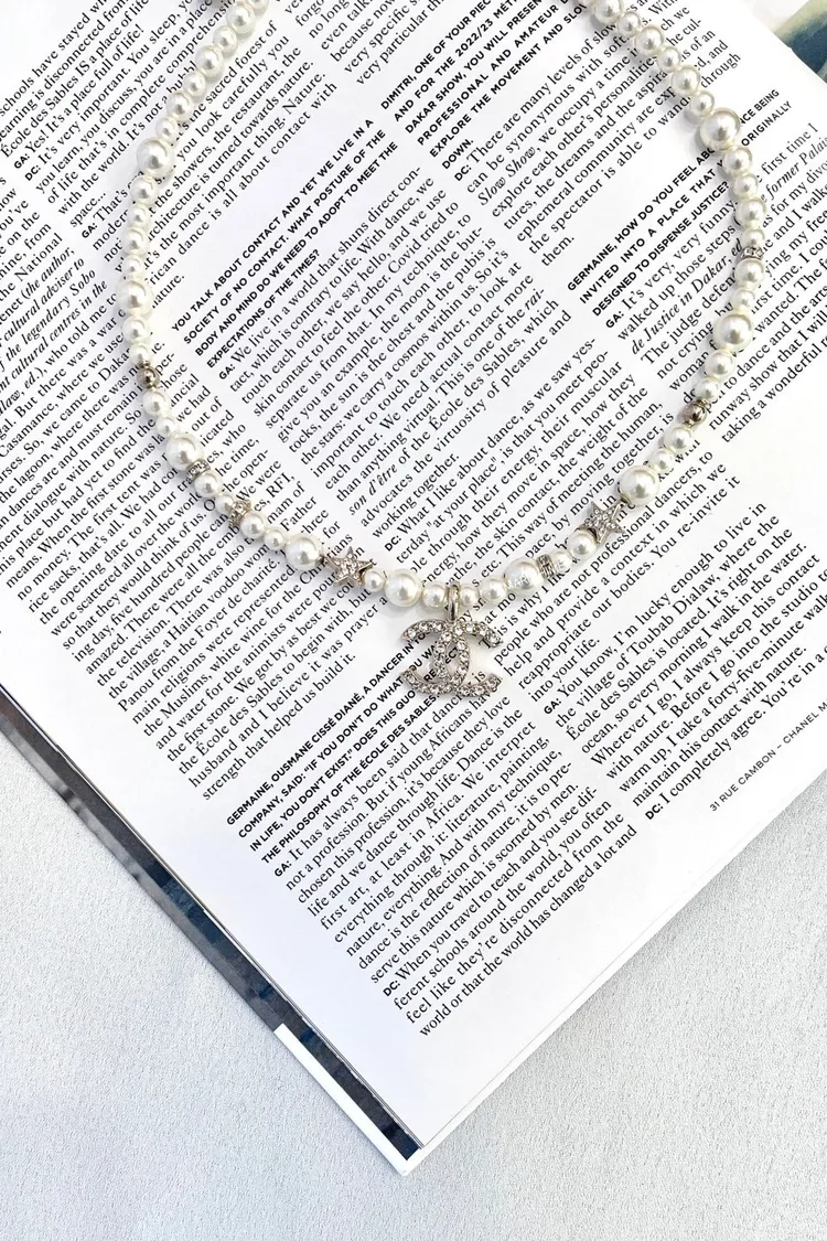 現貨//CHANEL 水鑽星星垂墜水鑽雙C珍珠 項鍊
