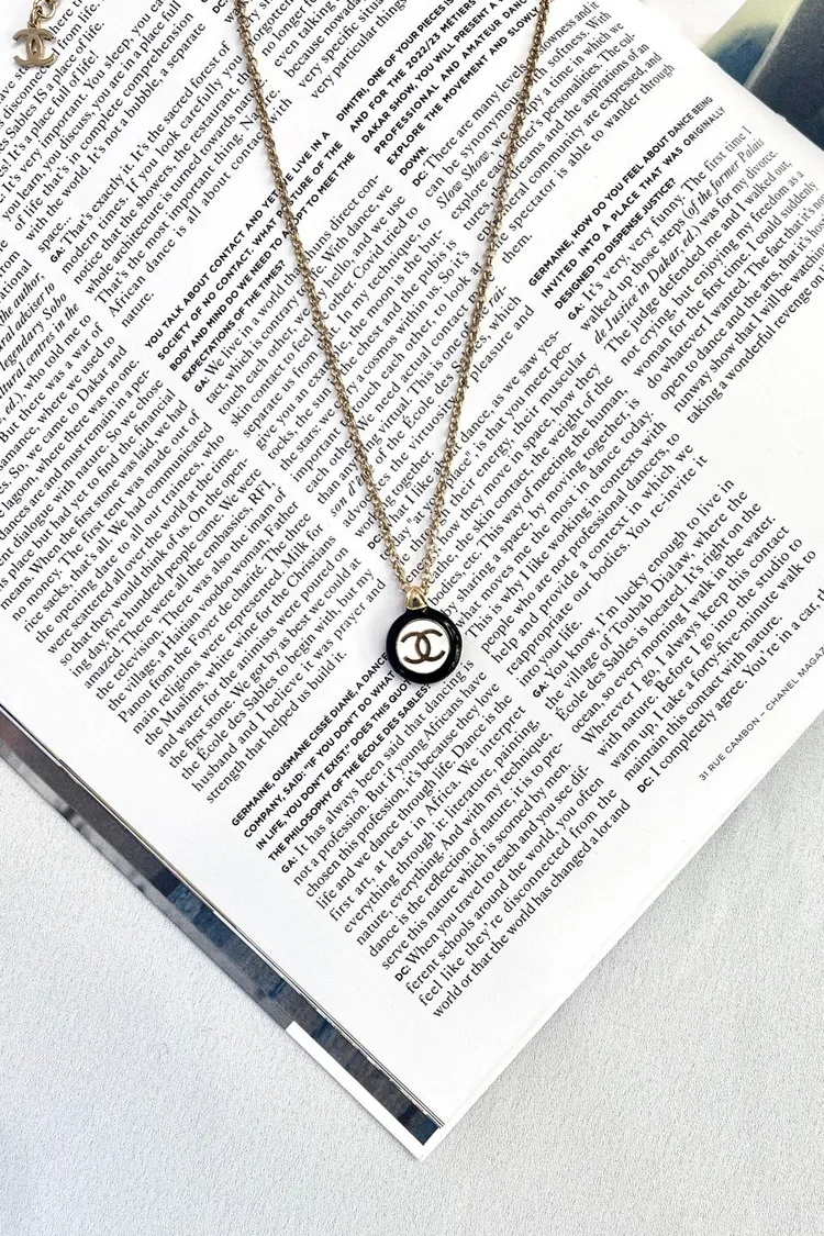 現貨//CHANEL 琺瑯圓餅 黑白鈕釦雙C 項鍊