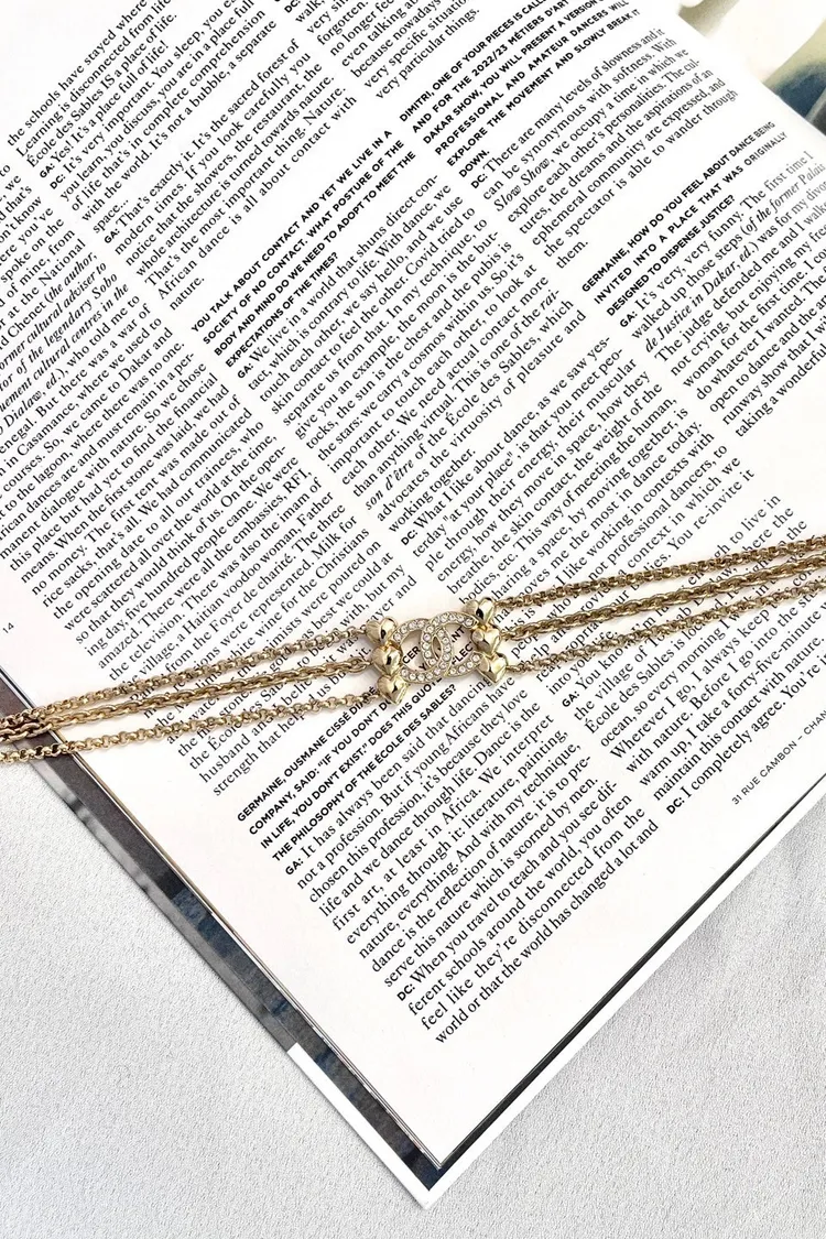 現貨//CHANEL 金屬六愛心水鑽雙C三鍊 頸鍊