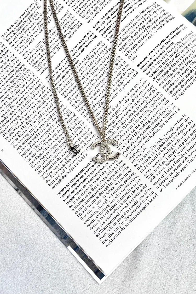 現貨//CHANEL 半金屬半水鑽雙C 項鍊
