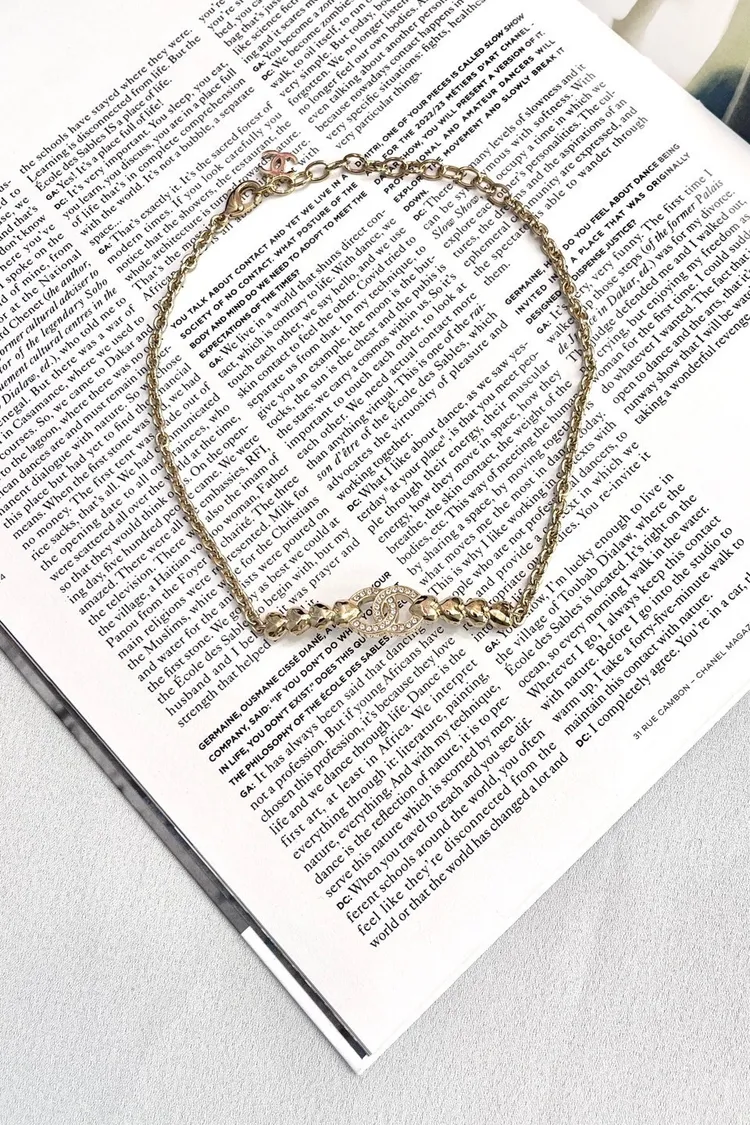 現貨//CHANEL 八金屬愛心水鑽雙C 頸鍊