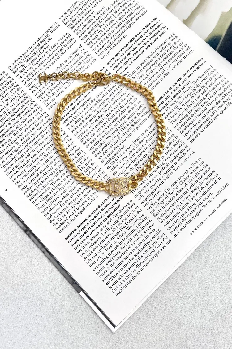 現貨//CHANEL 復古水鑽雙C金 項鍊