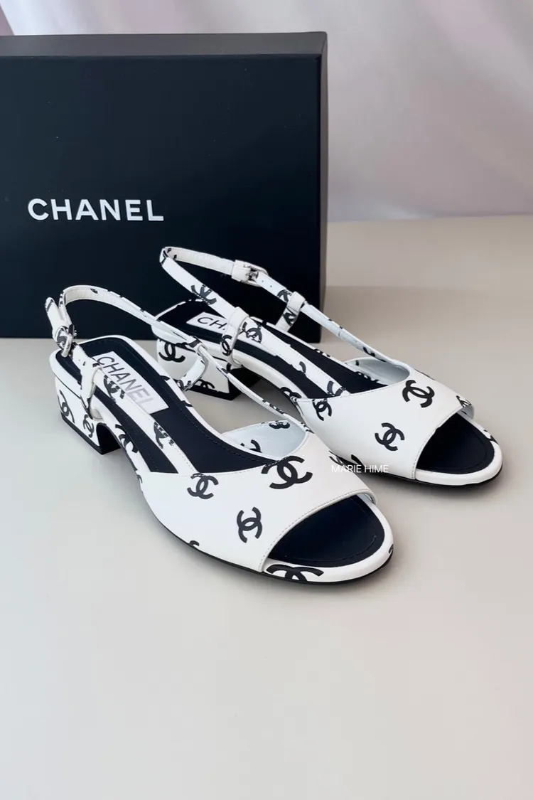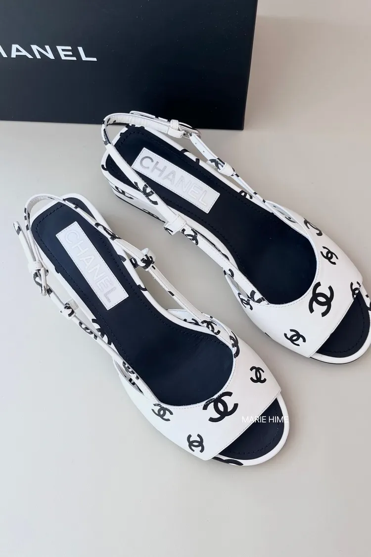 現貨//CHANEL 滿版黑白雙C低跟鞋