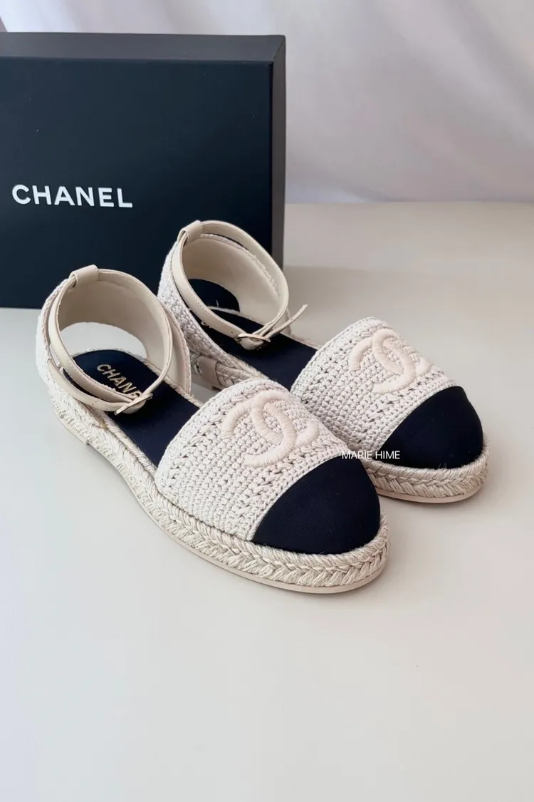 現貨//CHANEL 奶茶色編織踝套鉛筆鞋