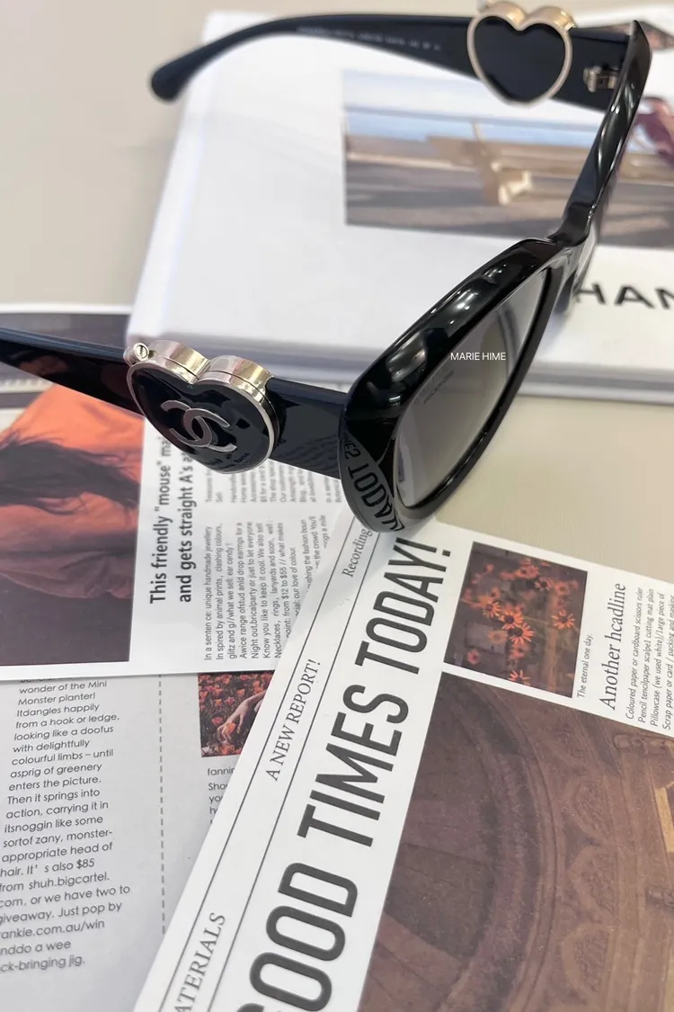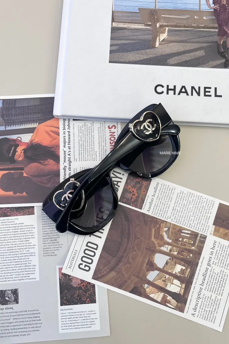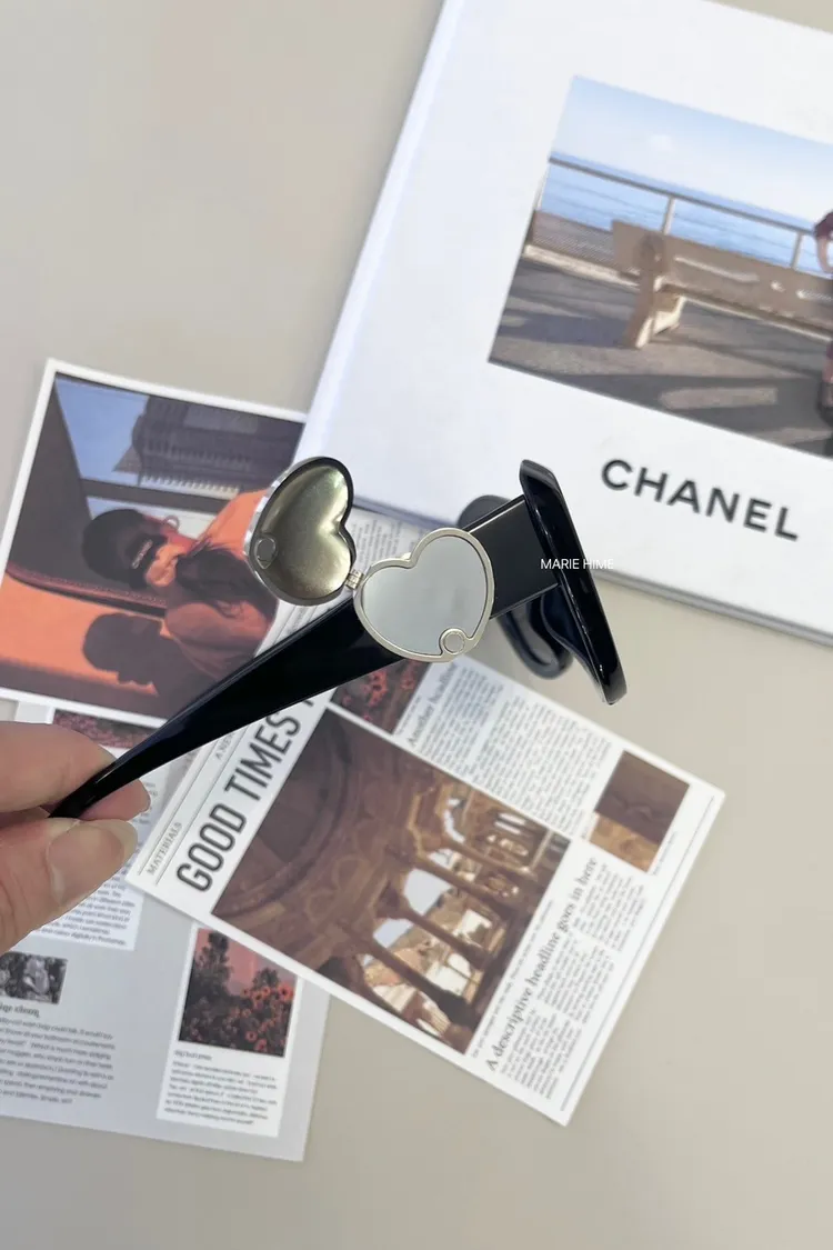 現貨//CHANEL 琺瑯大愛心鏡子 墨鏡