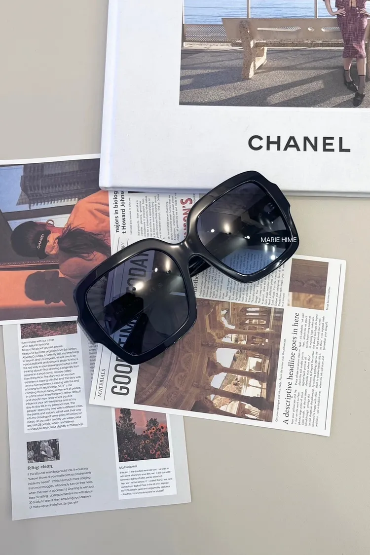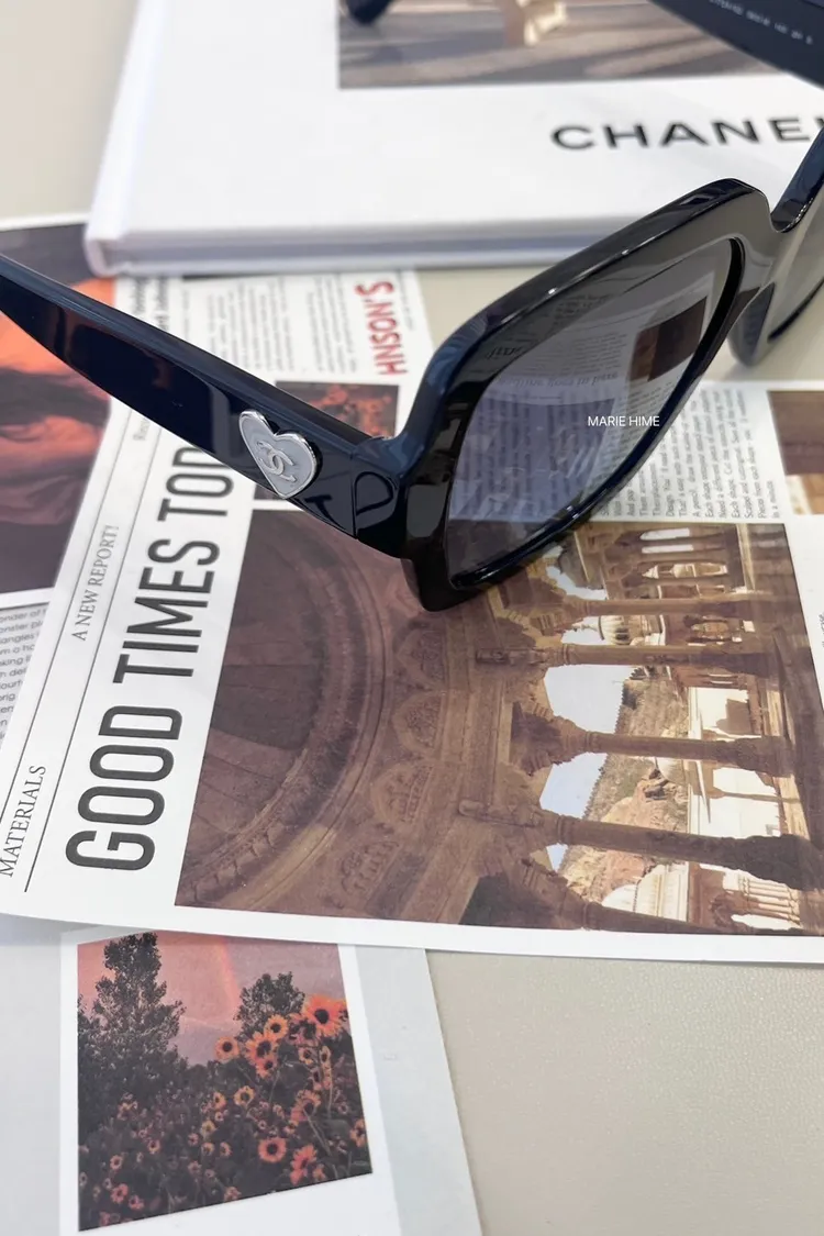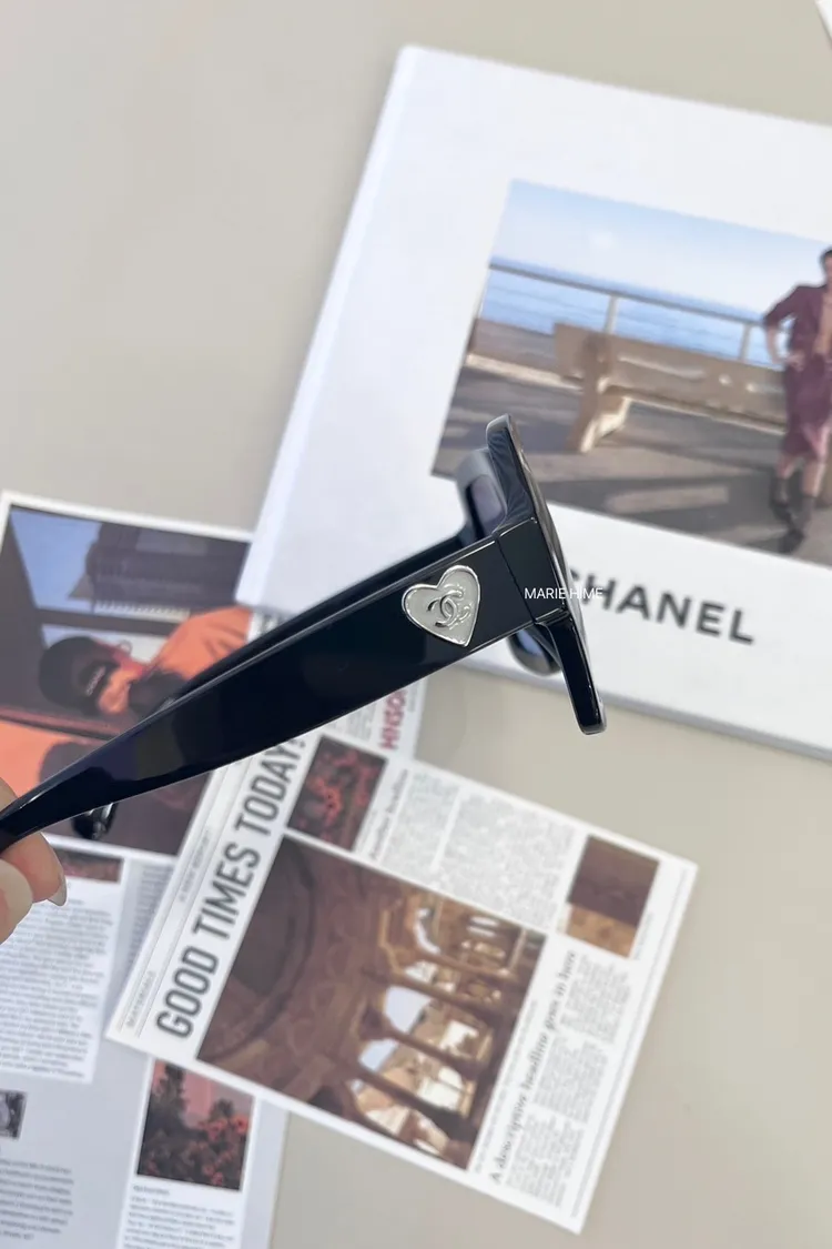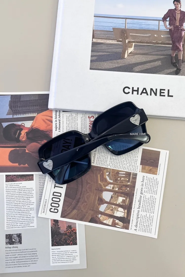 現貨//CHANEL 方框琺瑯白色愛心深藍 墨鏡
