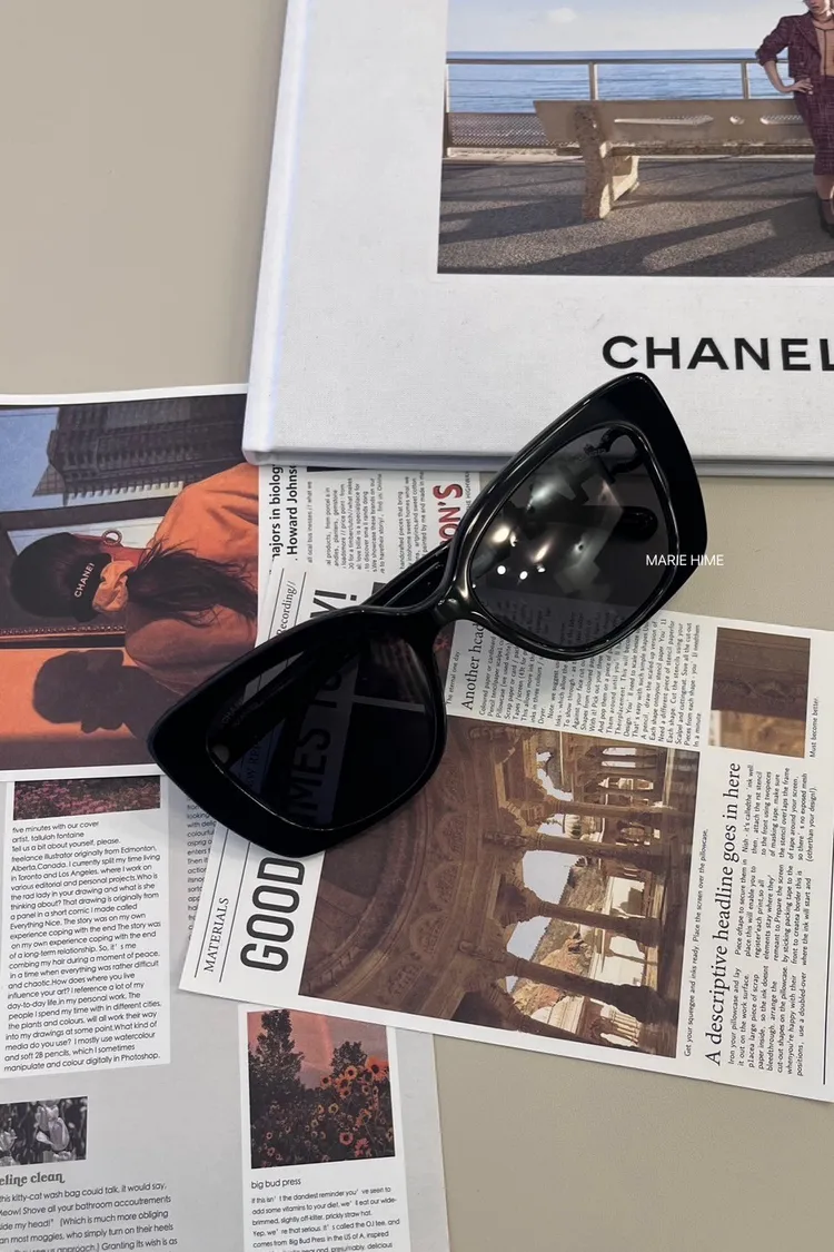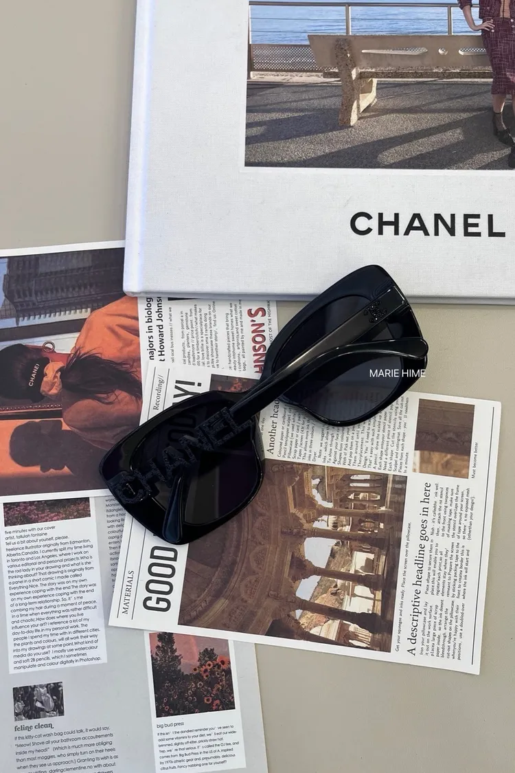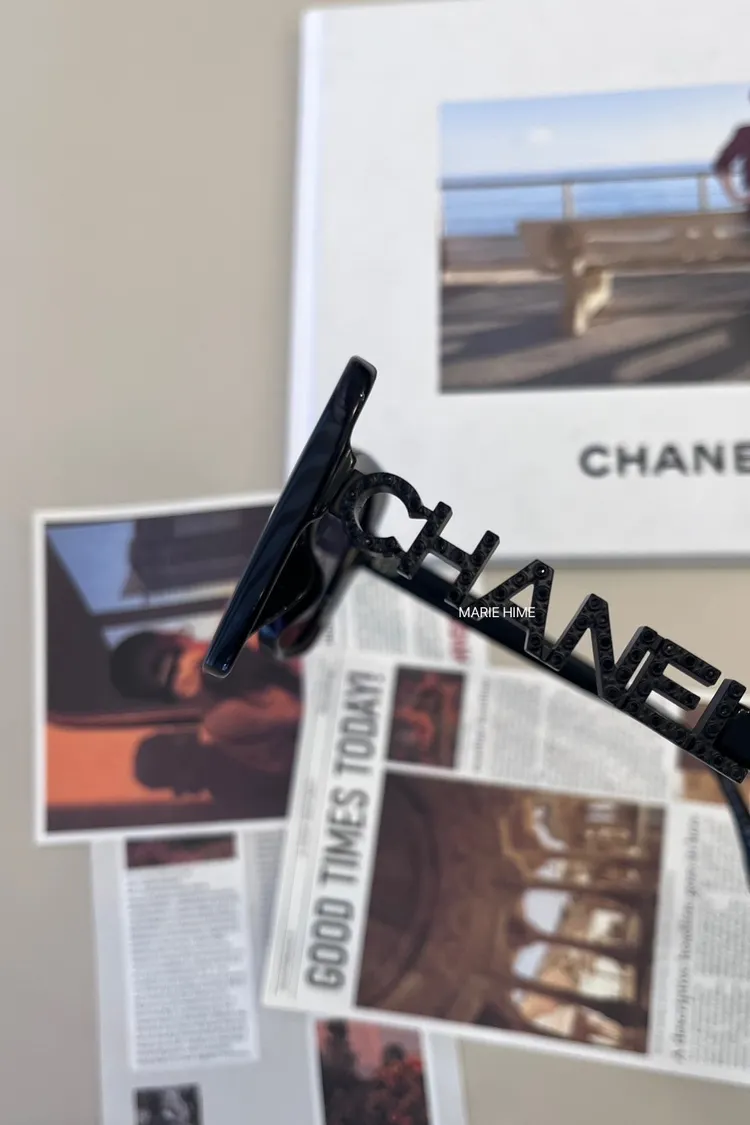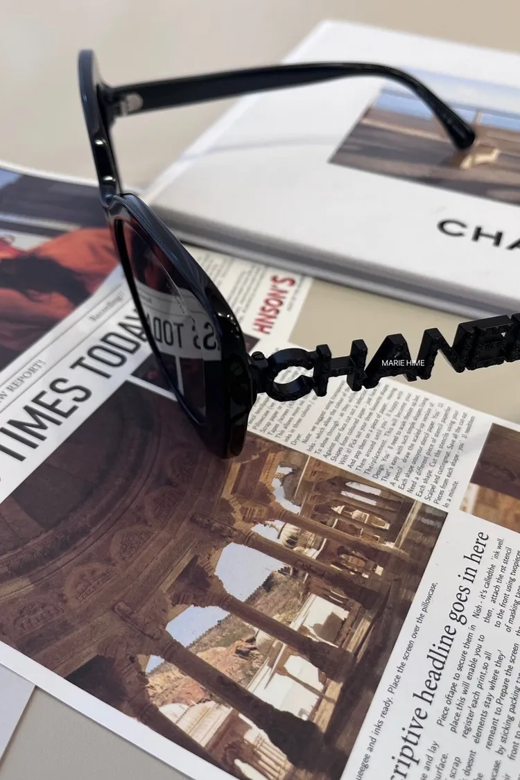現貨//CHANEL 黑色水鑽字母 墨鏡