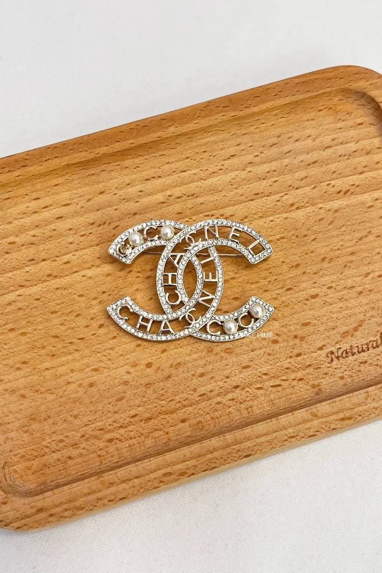現貨//CHANEL 字母鏤空珍珠水鑽雙C 胸針