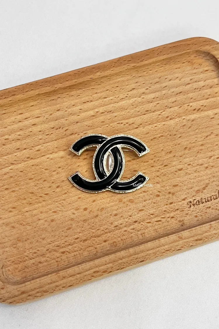 現貨//CHANEL 黑色琺瑯雙C 胸針