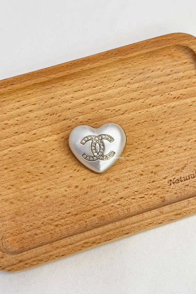 現貨//CHANEL 珍珠愛心水鑽雙C 胸針