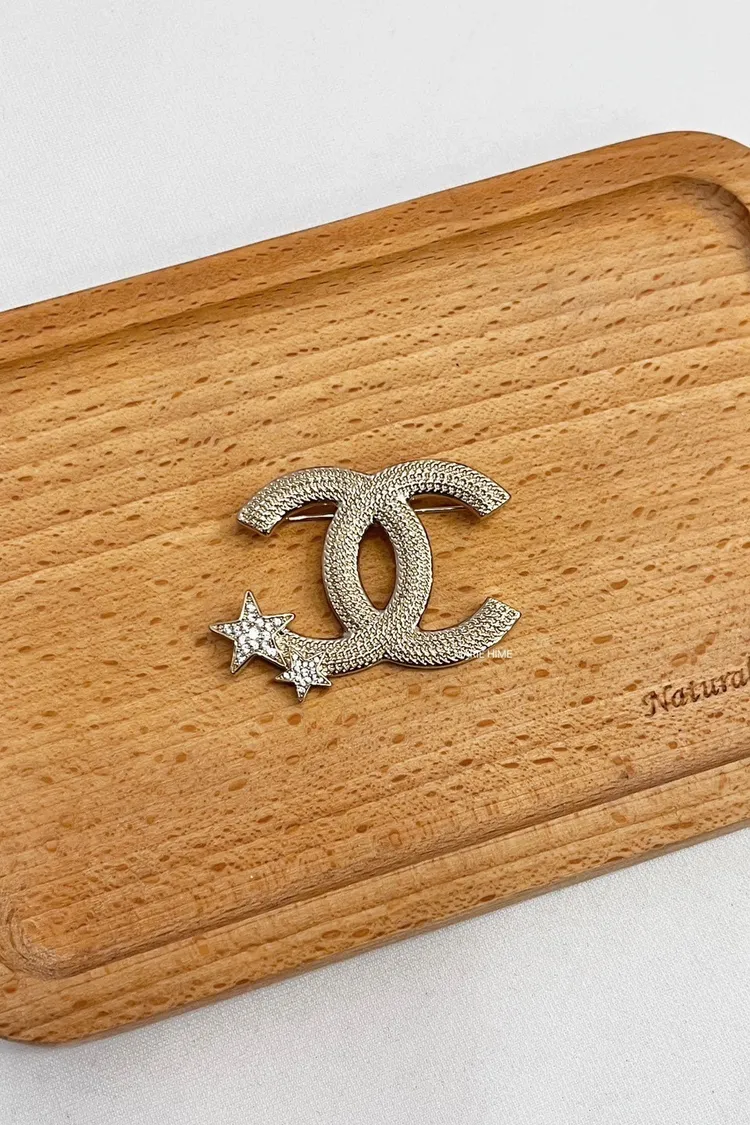 現貨//CHANEL 水鑽星星大刻紋雙C 胸針