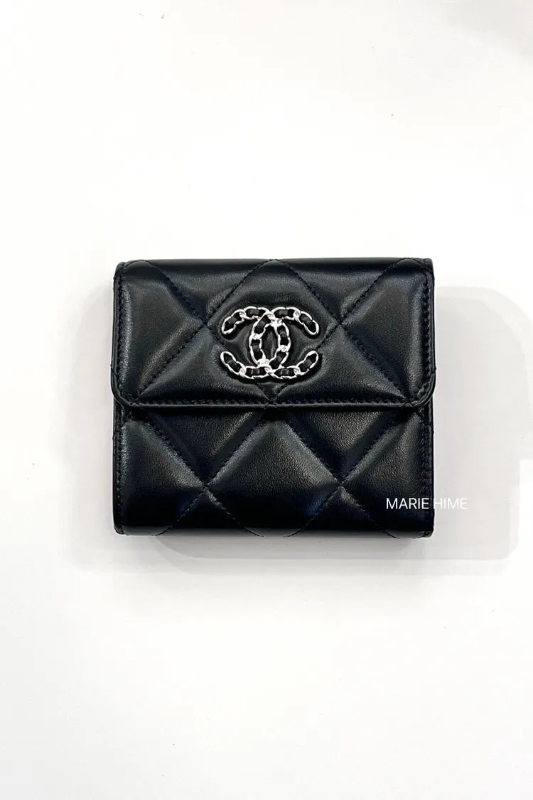 現貨//CHANEL 19 後背拉鍊 經典短夾 羊皮黑色銀釦