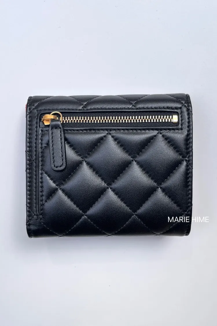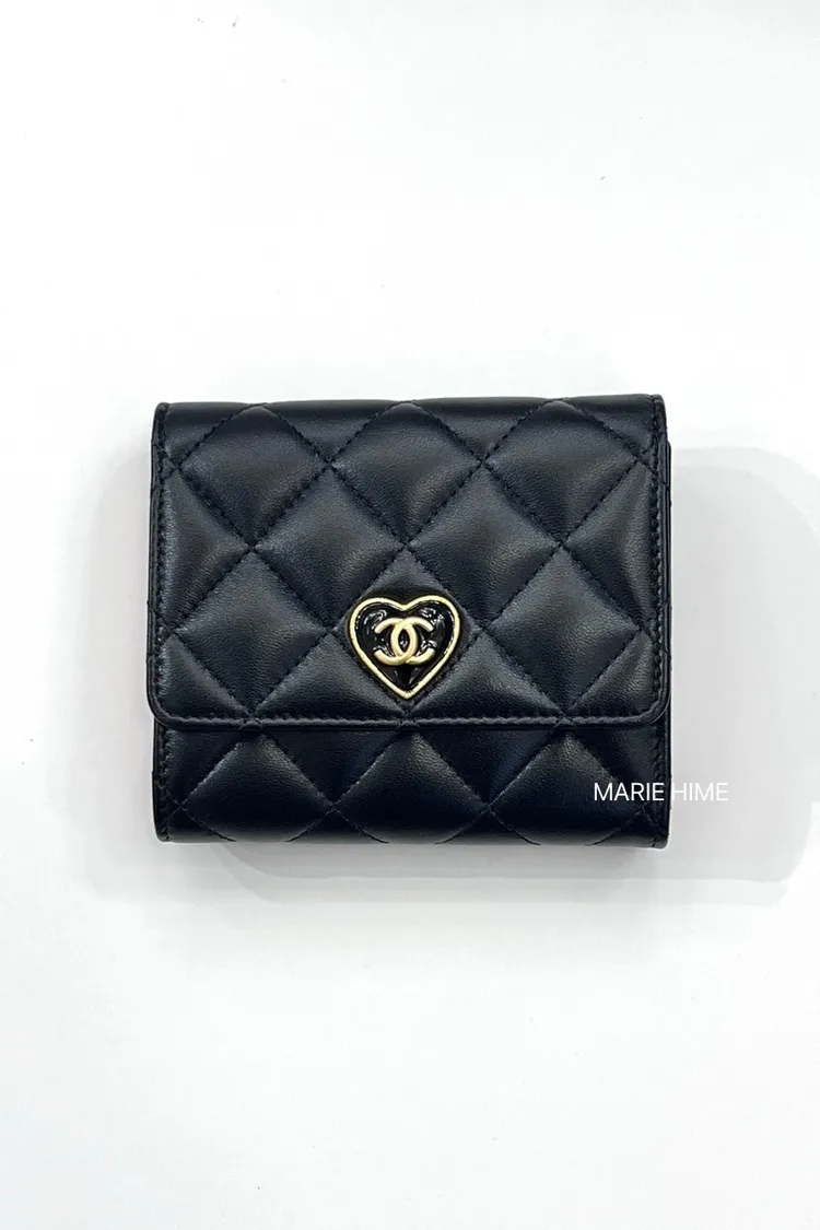 現貨//CHANEL 23S愛心琺瑯釦 後背拉鍊短夾