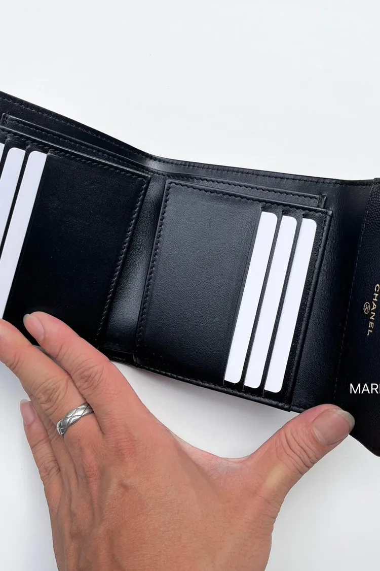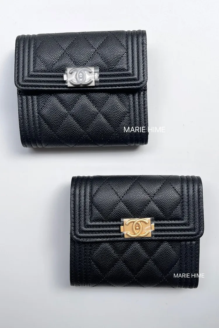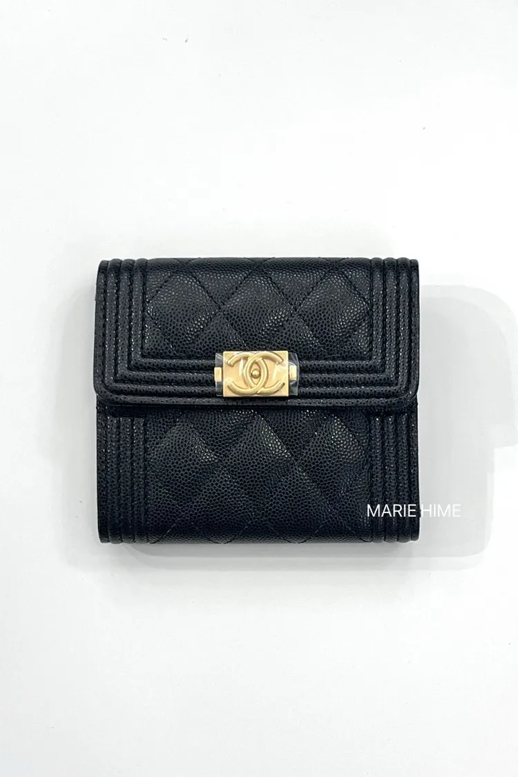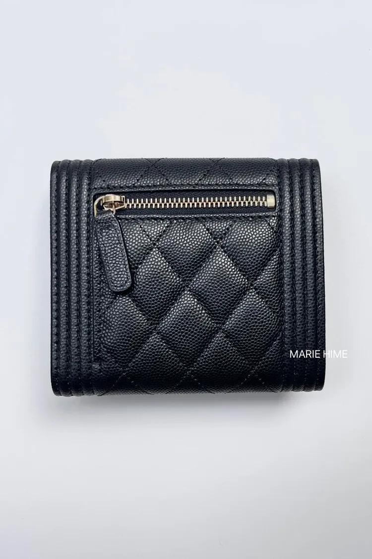 現貨//CHANEL boy 後背拉鍊 經典短夾 荔枝皮黑色金釦