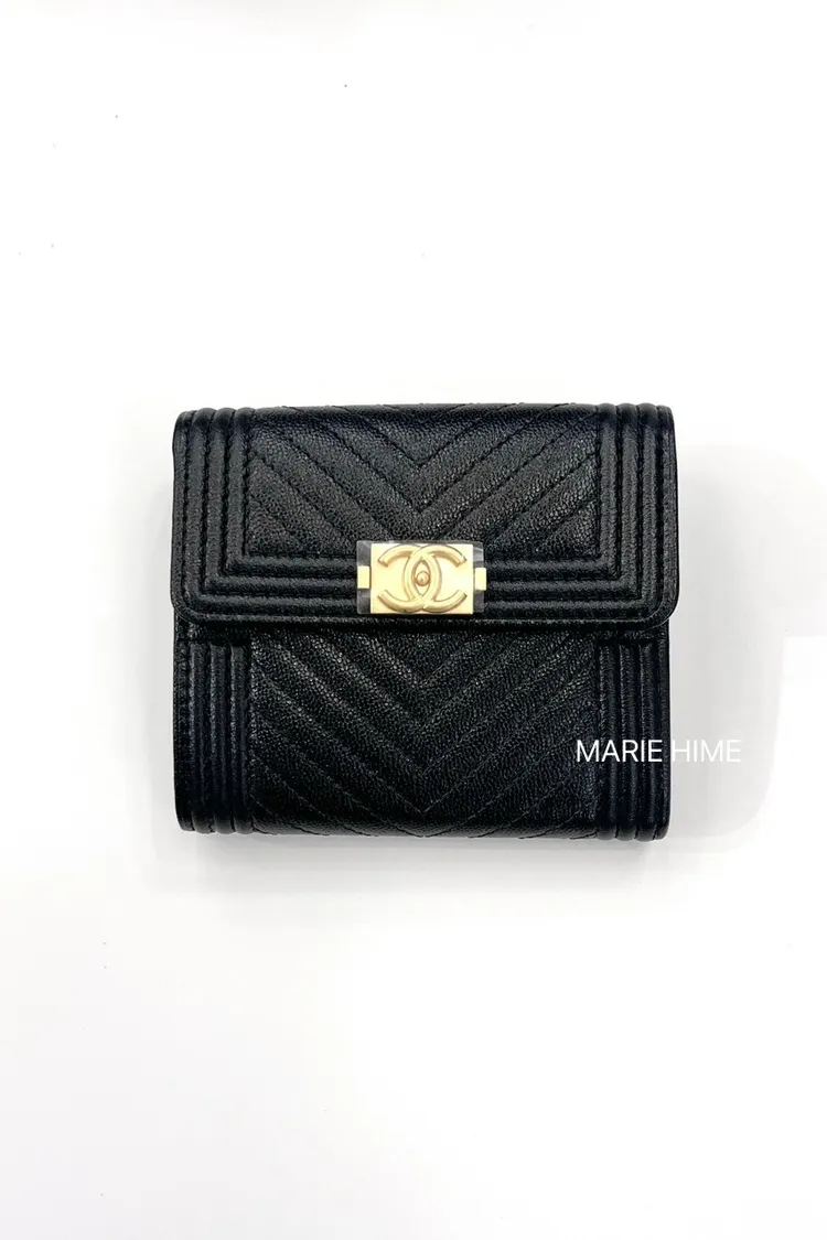 現貨//CHANEL boy 山型紋後背拉鍊 經典短夾