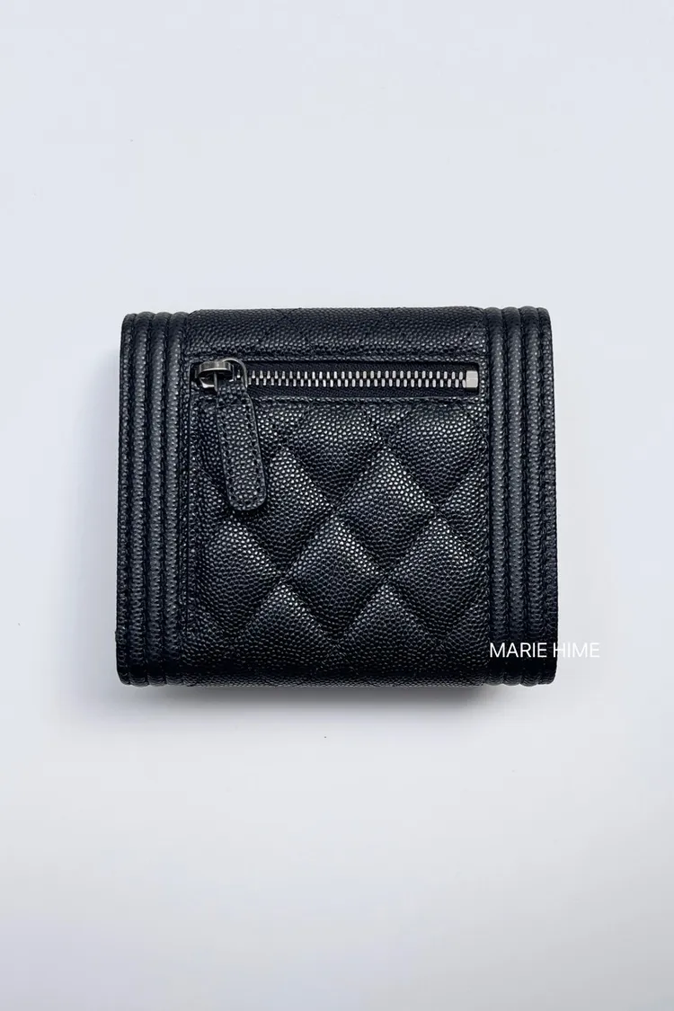 現貨//CHANEL boy 後背拉鍊 經典短夾 荔枝皮黑色銀釦