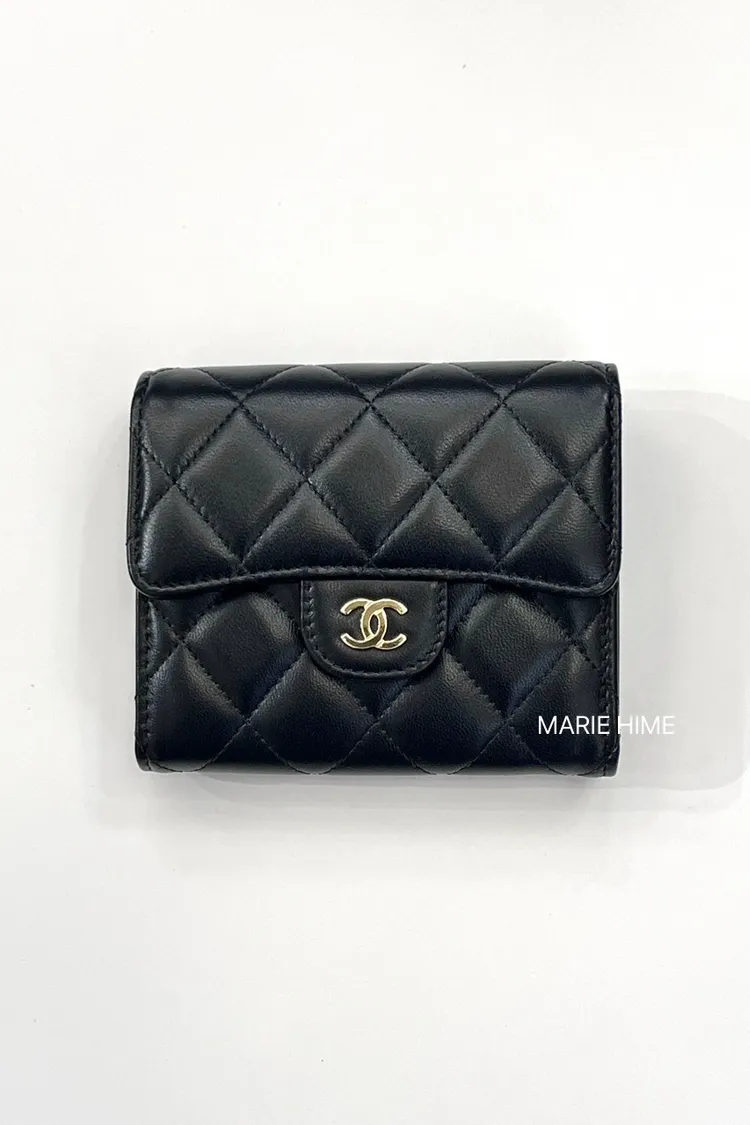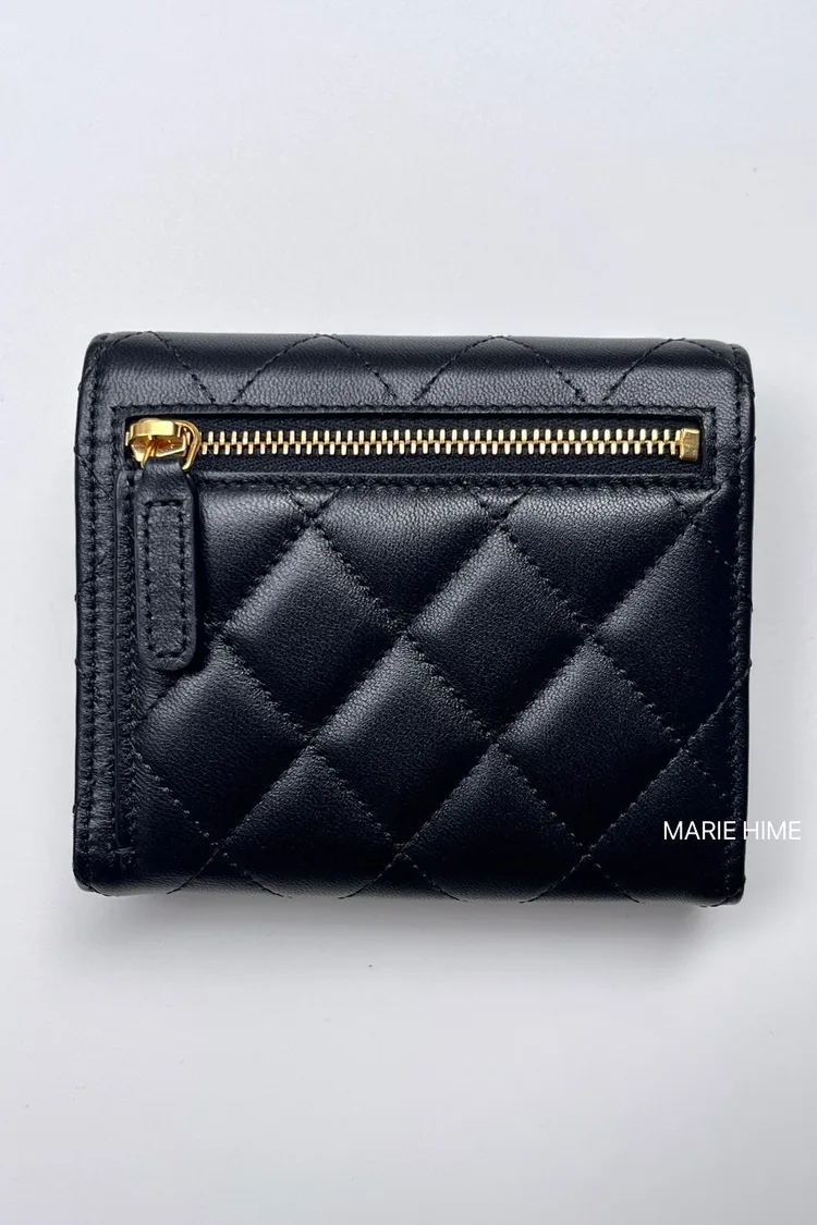 現貨//CHANEL COCO 後背拉鍊 經典短夾 羊皮黑色金釦