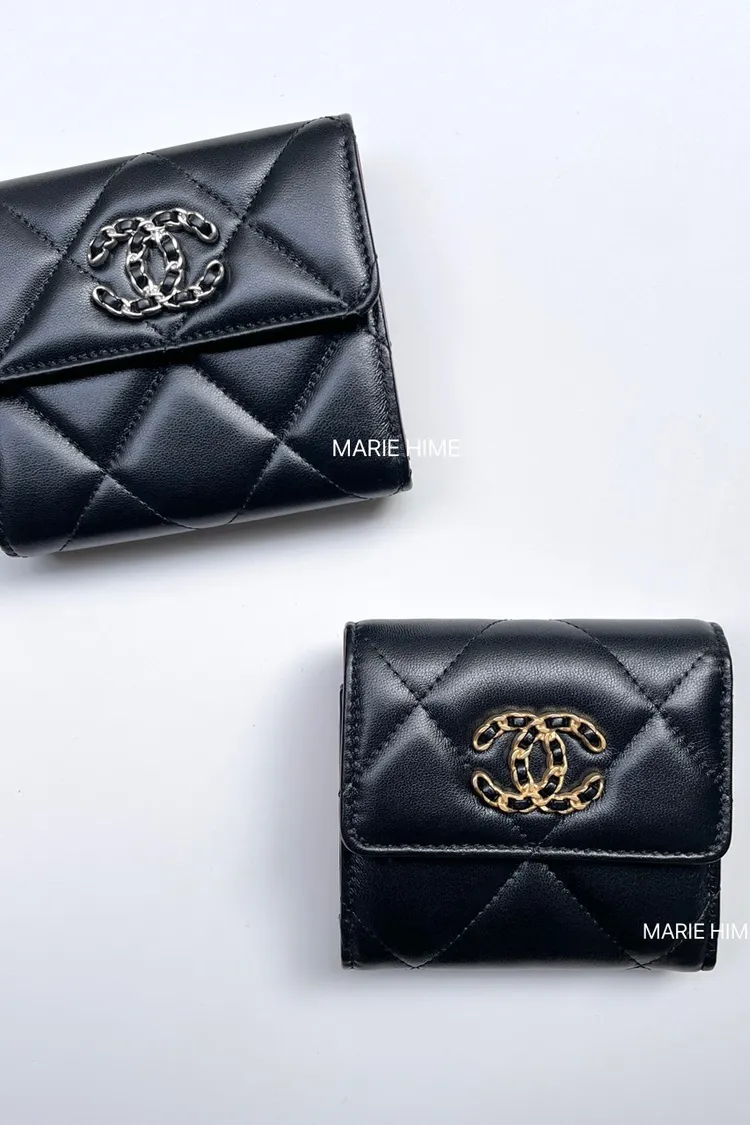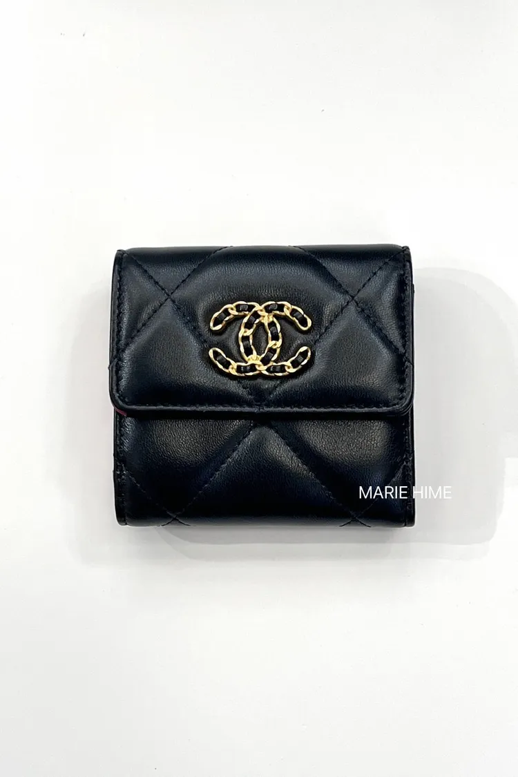 現貨//CHANEL 19 側拉鍊短夾 羊皮黑色金釦