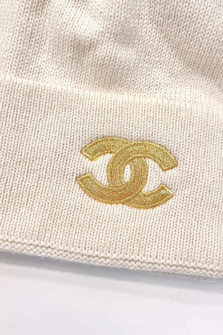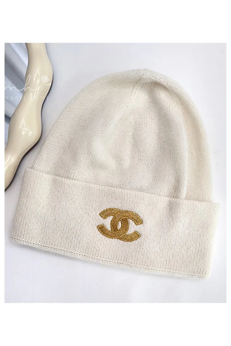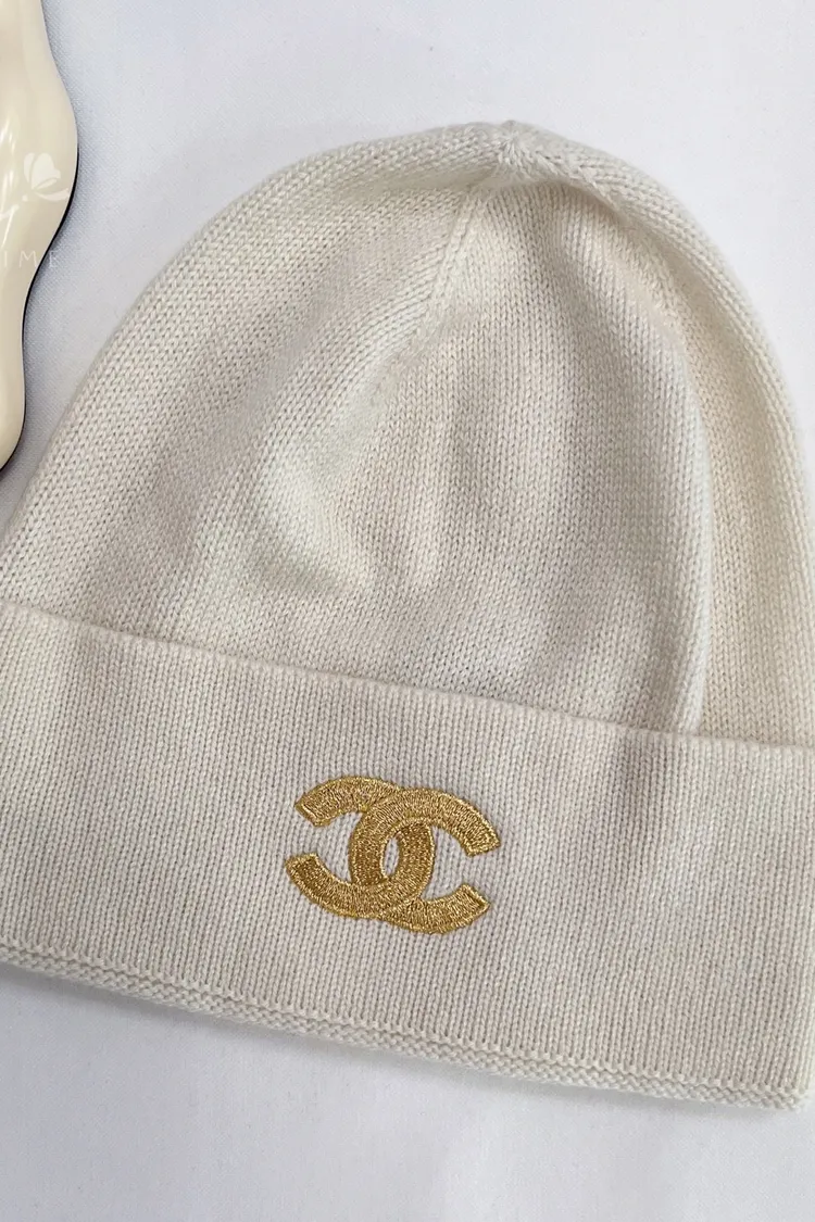 現貨//CHANEL 刺繡金色雙C 白色 毛帽