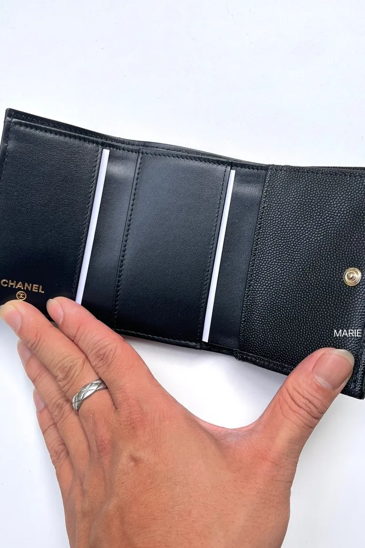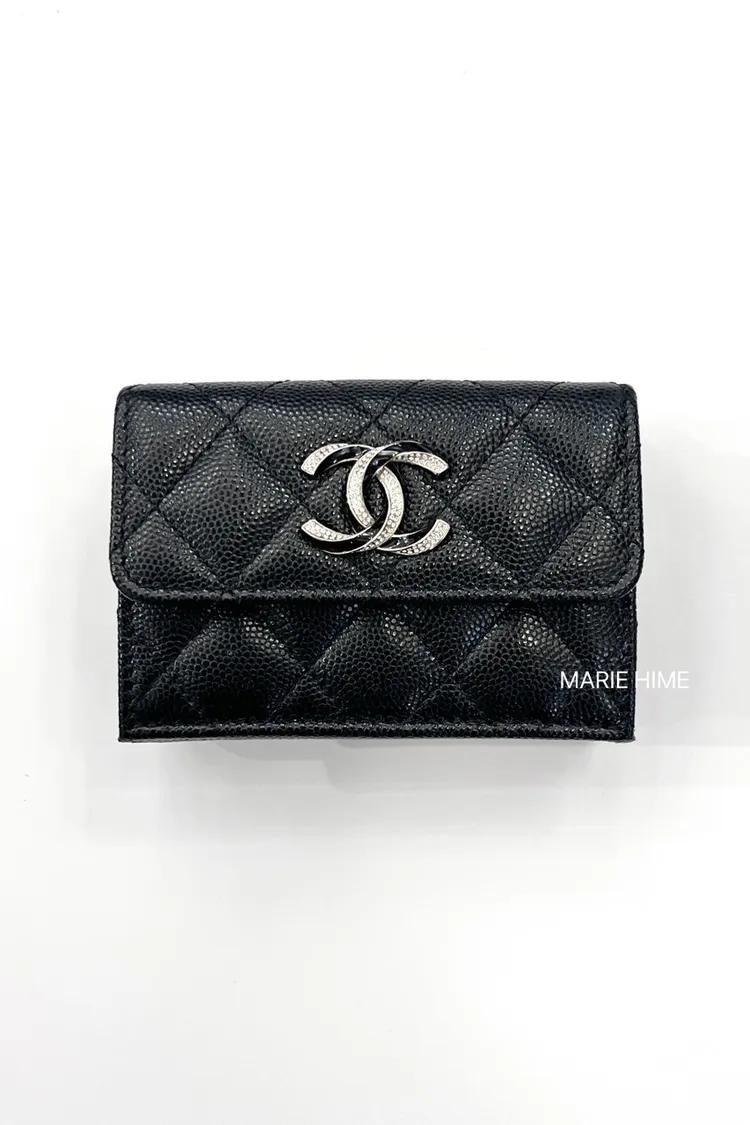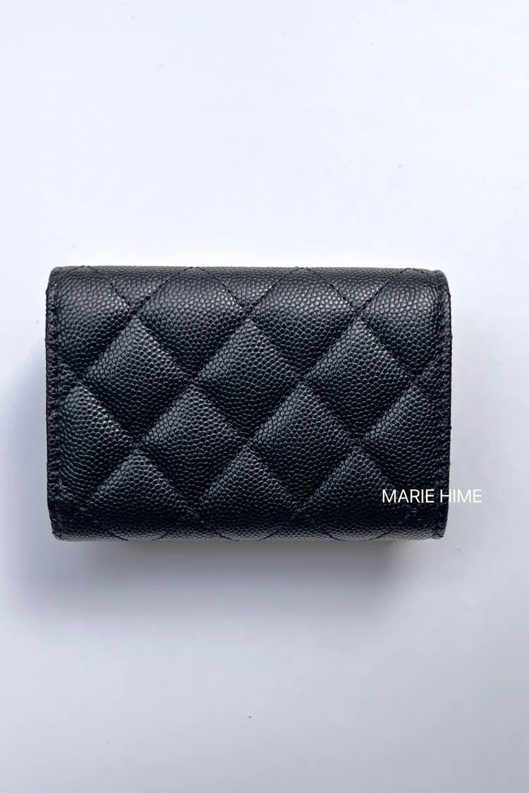 現貨//CHANEL 23S限量釦超迷你短夾 荔枝皮黑色金釦