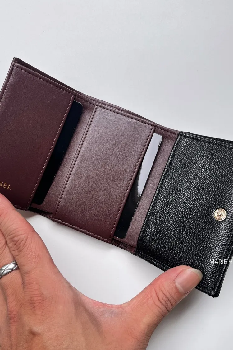 現貨//CHANEL COCO 經典超米你短夾 荔枝皮黑色金釦