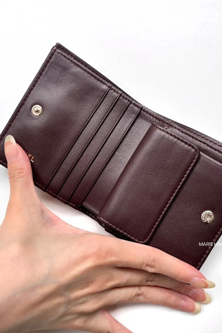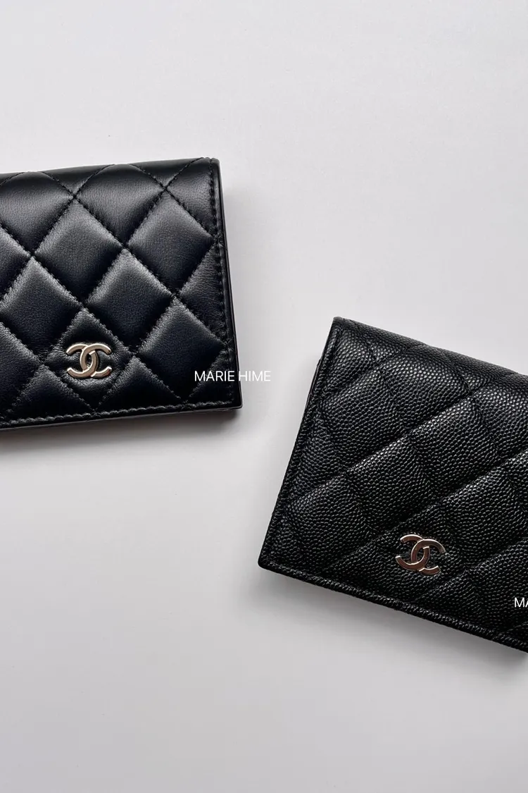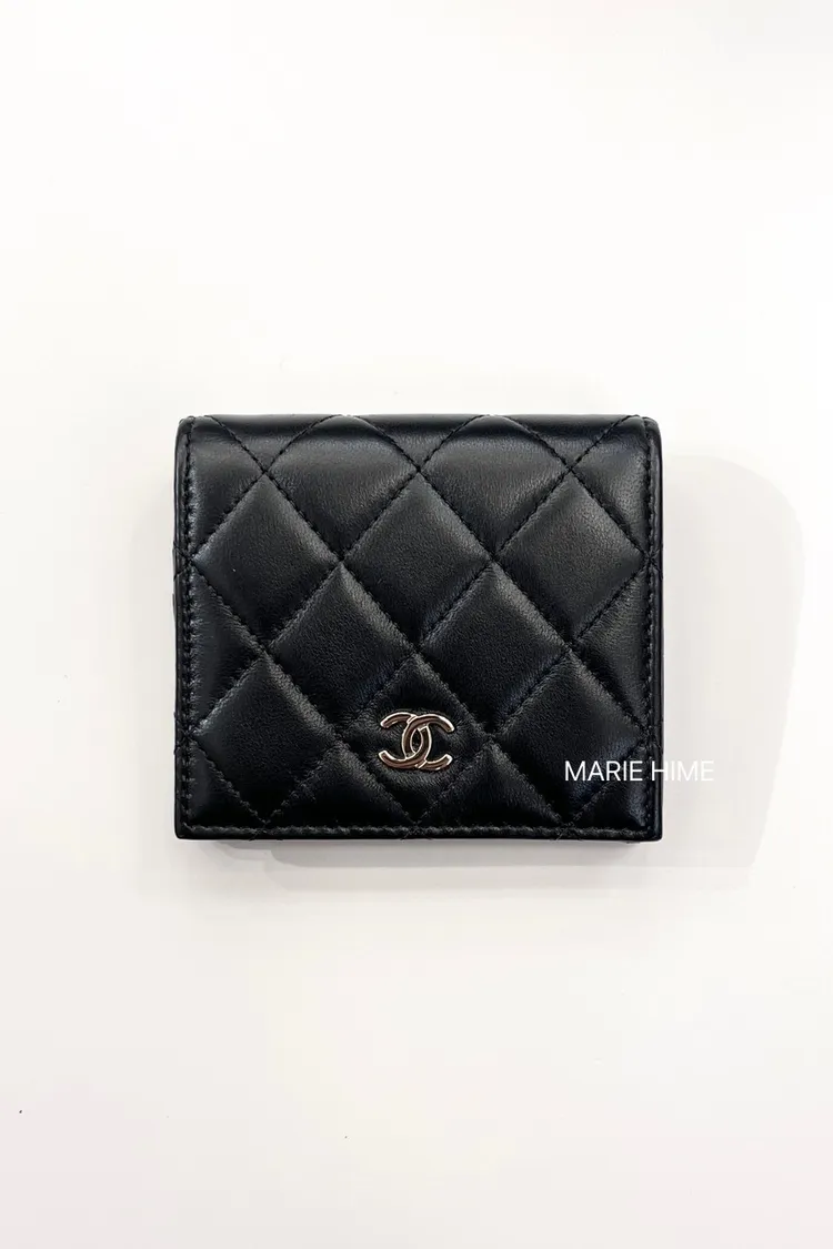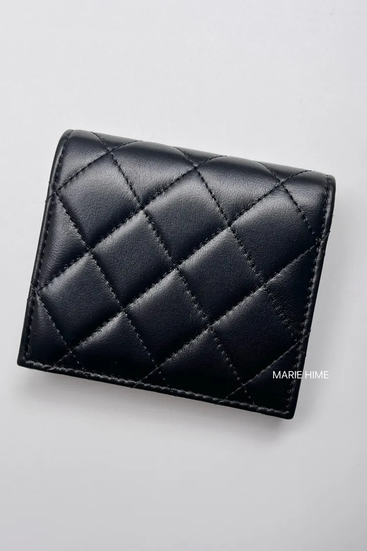 現貨//CHANEL COCO 對折內錢袋短夾 羊皮黑色金釦