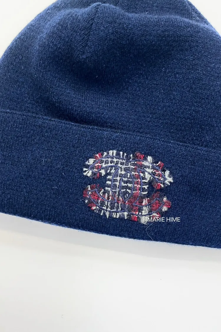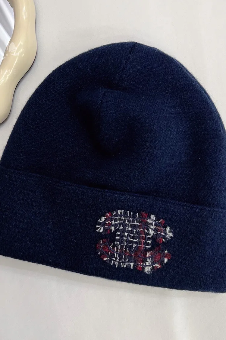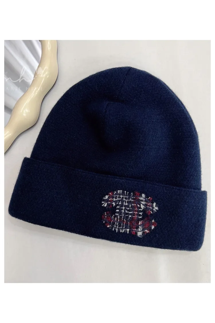 現貨//CHANEL 毛呢雙C 藍色毛帽