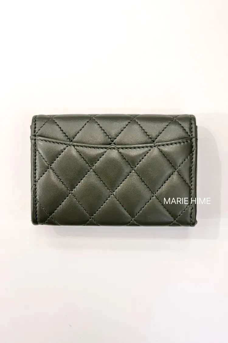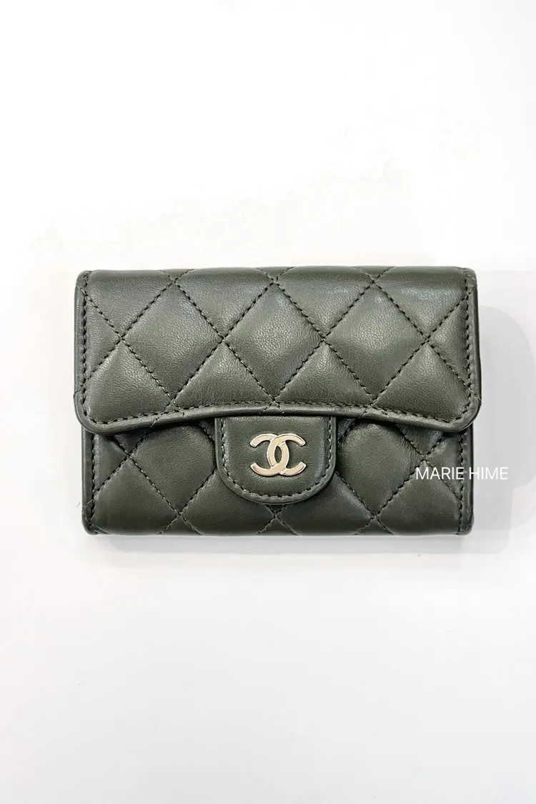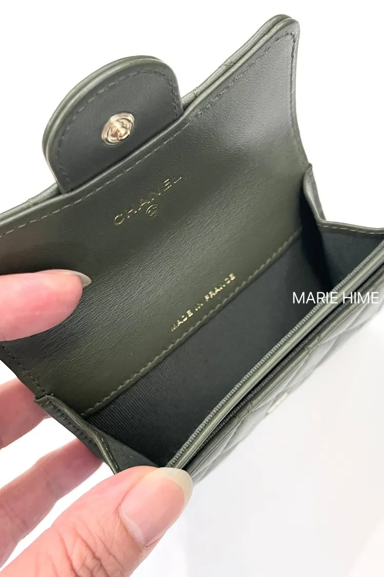 現貨//CHANEL COCO單層錢包 古巴綠羊皮金釦
