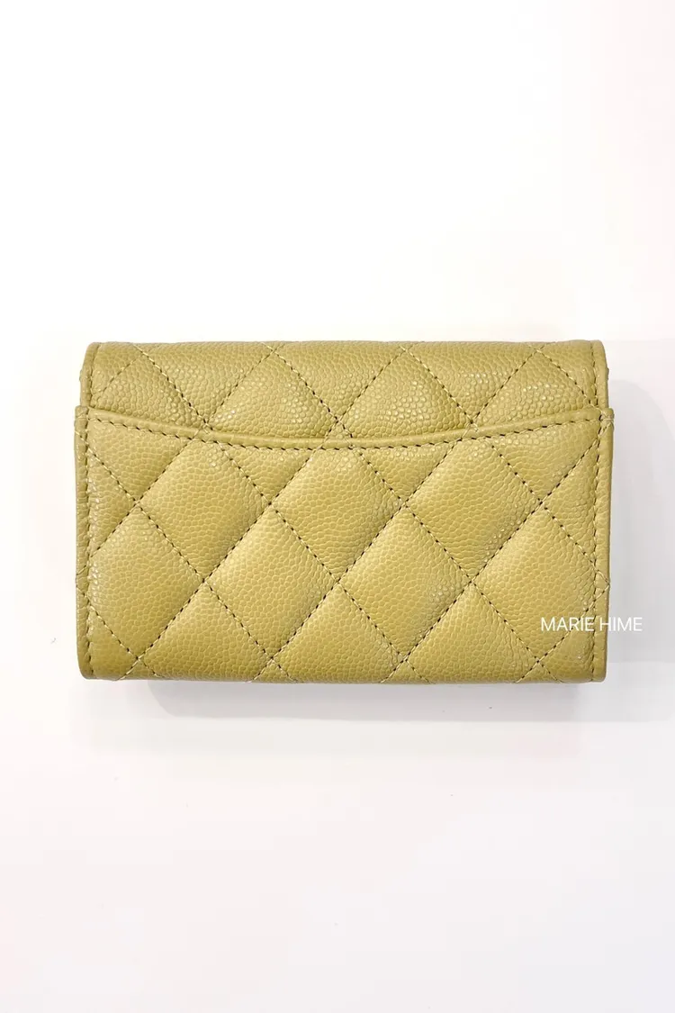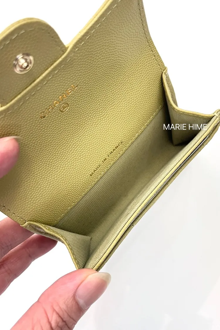 現貨//CHANEL COCO單層錢包 芥末黃荔枝皮金釦