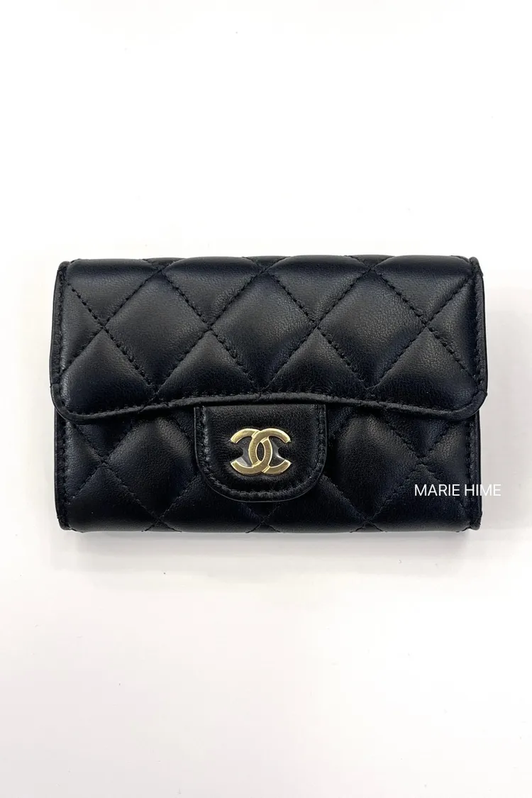 現貨//CHANEL COCO 信封單層錢包 羊皮黑色金釦