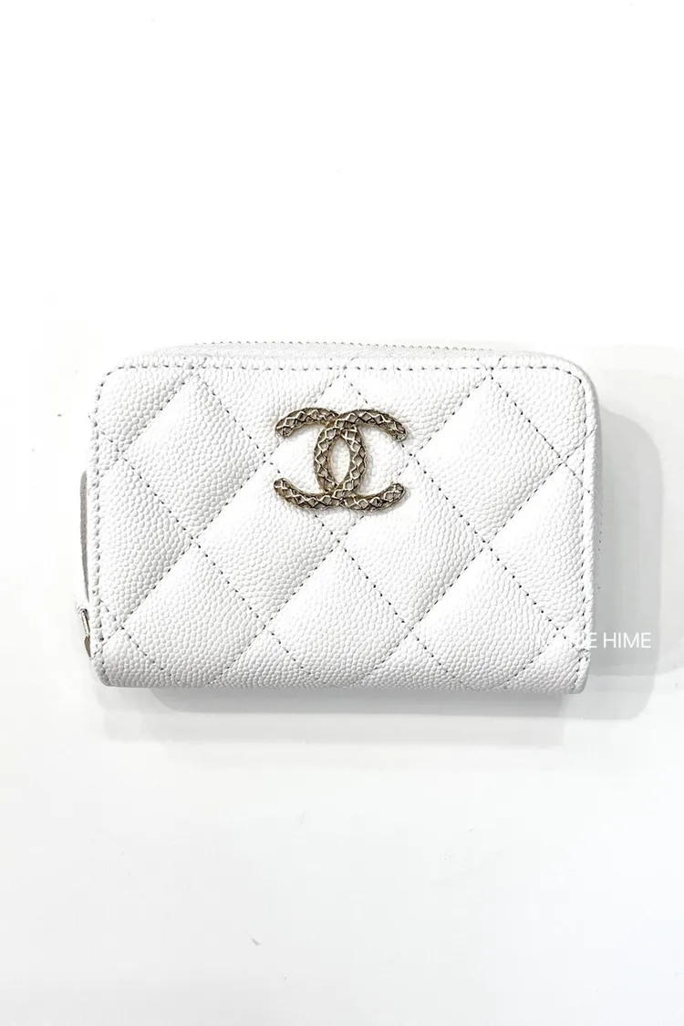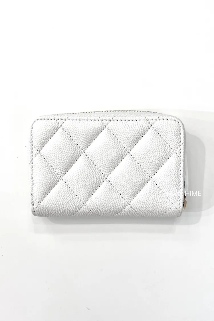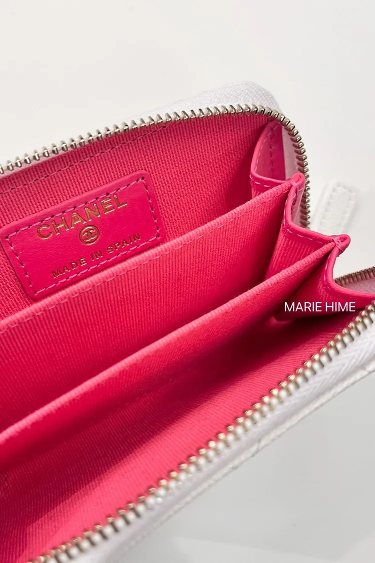 現貨//CHANEL 23P限量釦拉鍊錢包 荔枝皮白色金釦