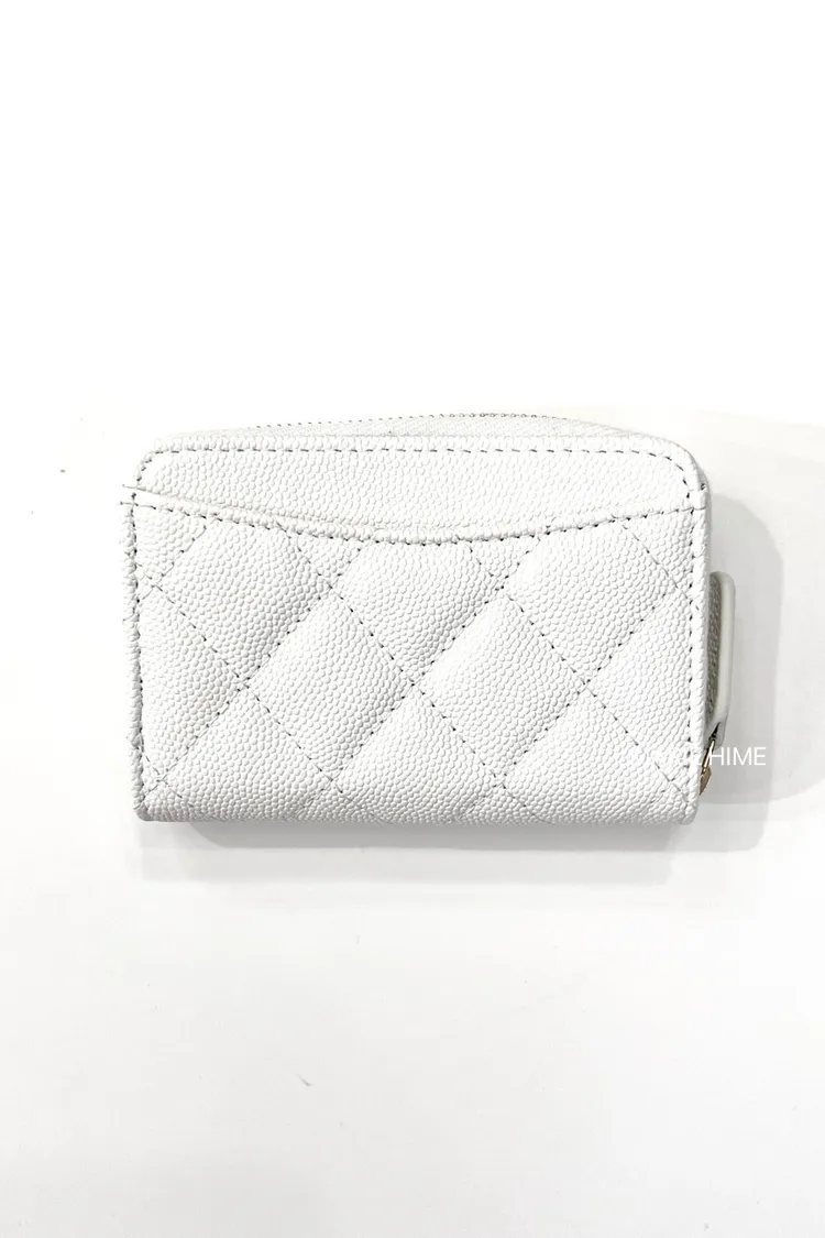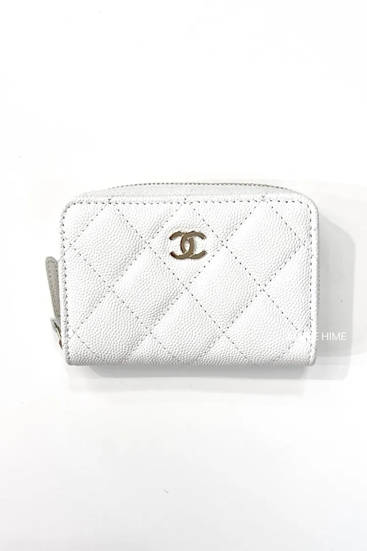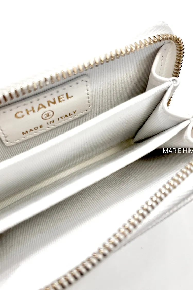 現貨//CHANEL COCO拉鍊錢包 荔枝皮白色金釦