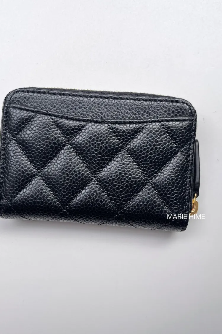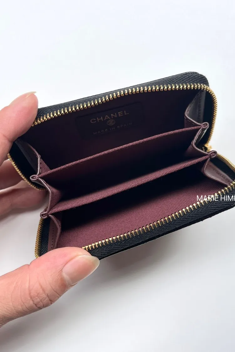 現貨//CHANEL COCO M字拉鍊錢包 荔枝皮黑色金釦