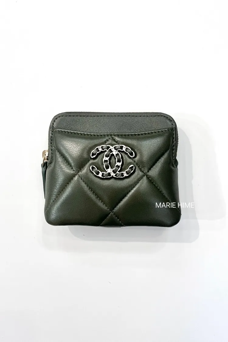 現貨//CHANEL 19吐司錢包 羊皮古巴綠銀扣