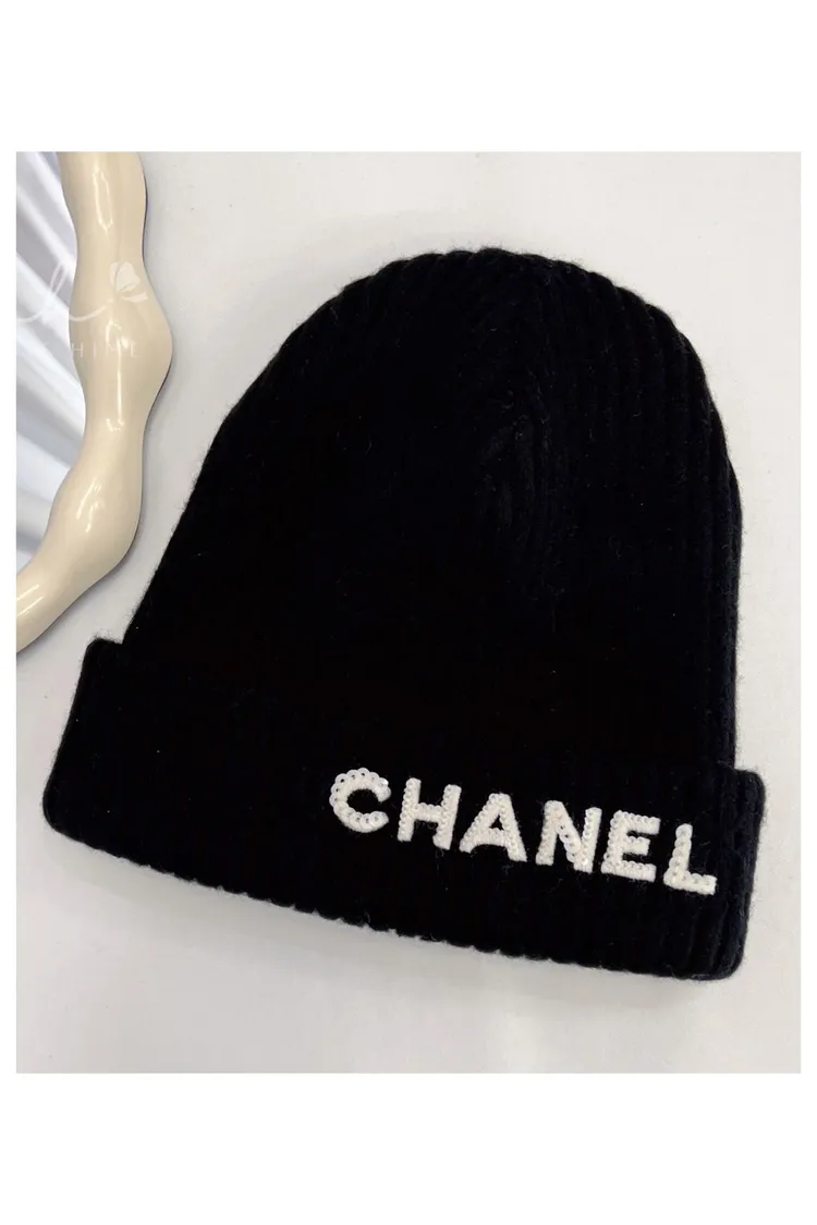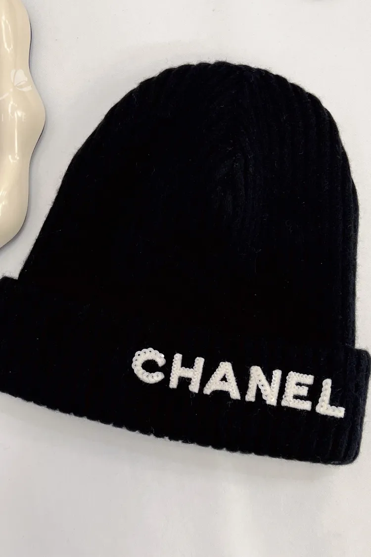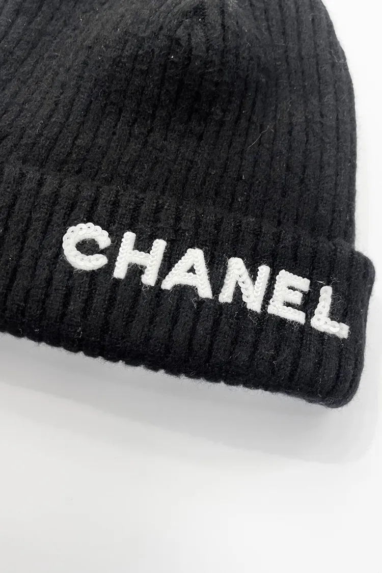 現貨//CHANEL 亮片字母 黑色 毛帽