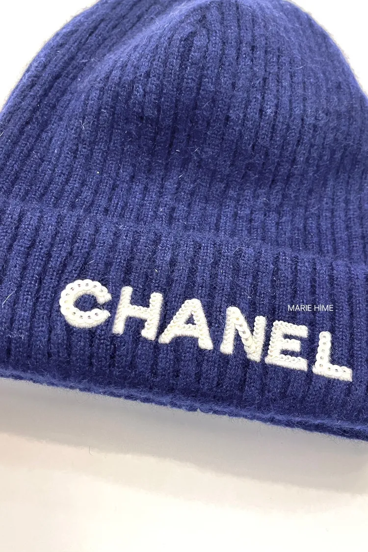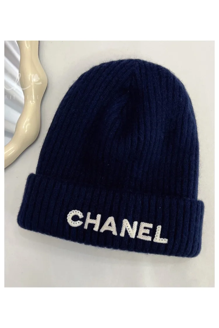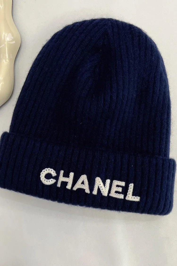 現貨//CHANEL 亮片字母 深藍色 毛帽