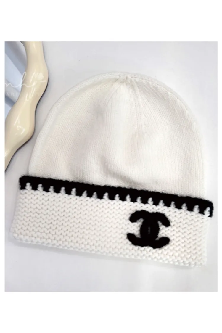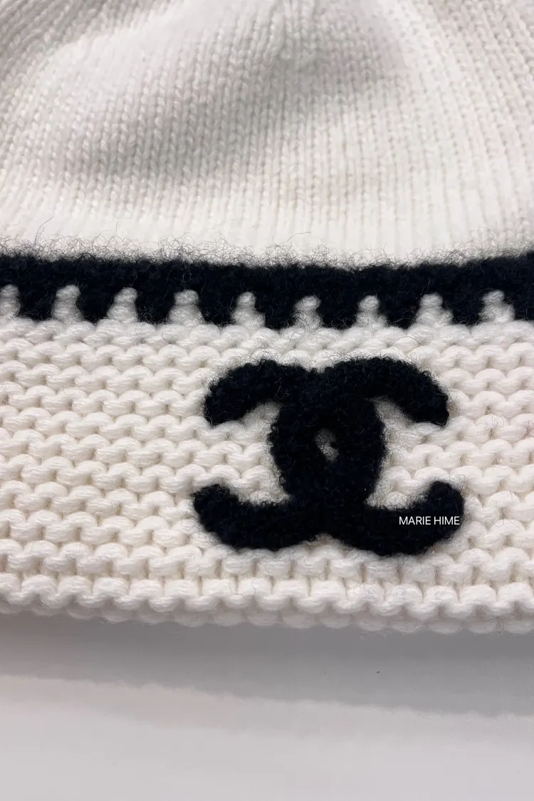 現貨//CHANEL 齒輪邊 雙C 白色 毛帽