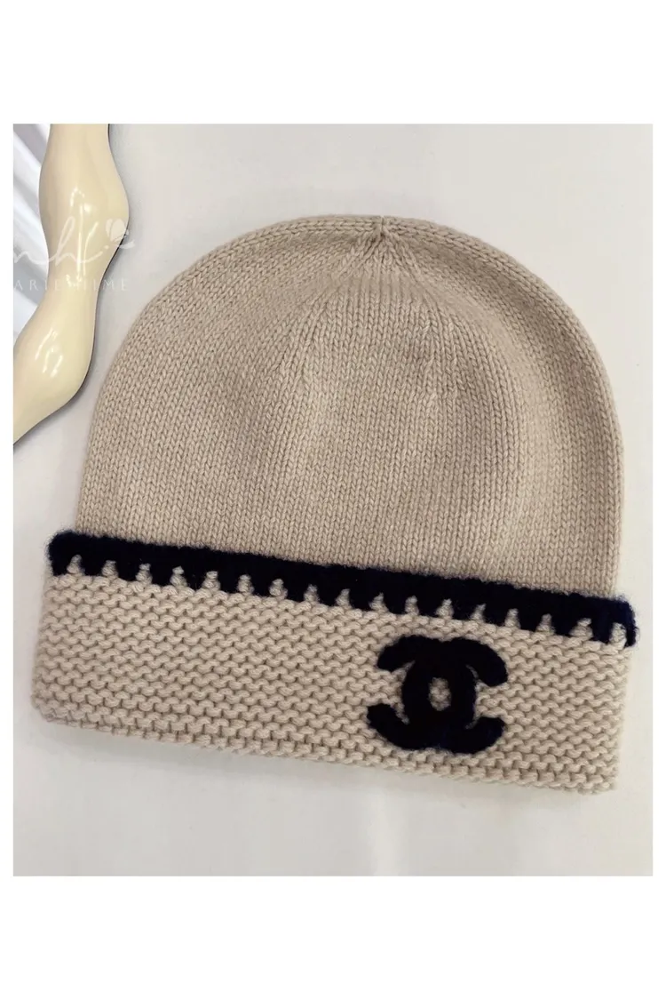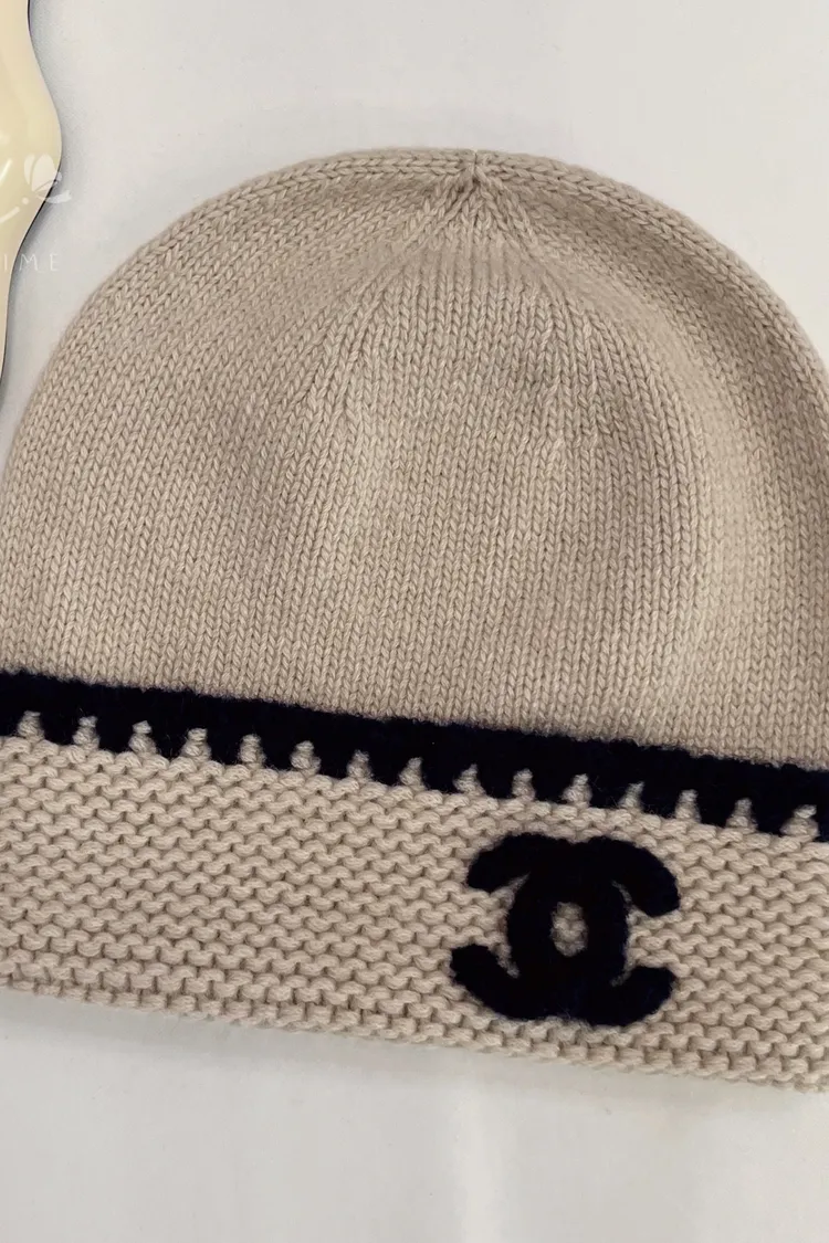 現貨//CHANEL 齒輪邊 雙C 奶茶色 毛帽